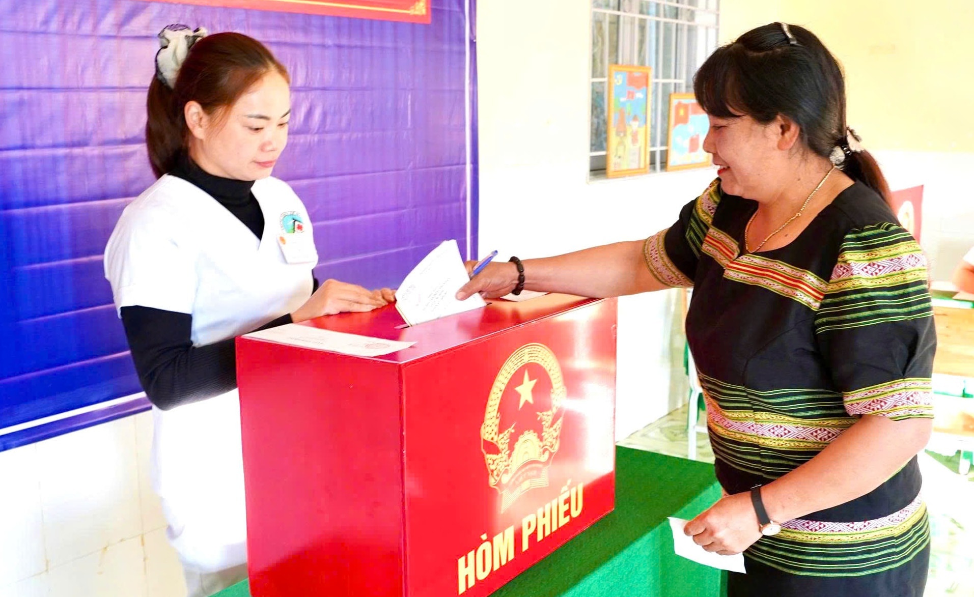 Khu vực bỏ phiếu đặt tại các nhà rông và trường học trên địa bàn.