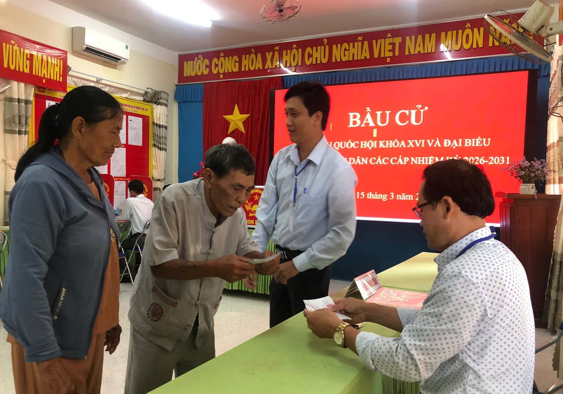 Ở huyện đảo Lý Sơn, gần 18.000 cử tri cũng nô nức tham gia bầu cử tại 8 khu vực bỏ phiếu trên địa bàn. Đúng 6 giờ 45 phút, các khu vực bỏ phiếu đồng loạt tổ chức lễ khai mạc trang trọng và thực hiện các thủ tục cần thiết để chính thức bắt đầu cuộc bầu cử.