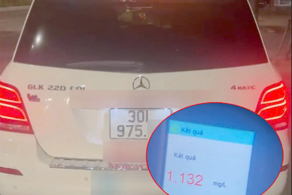 Qua kiểm tra, cảnh sát ghi nhận tài xế điều khiển xe ô tô là N.H.T (44 tuổi, trú tại Hà Nội) vi phạm nồng độ cồn ở mức 1,132 mg/L khí thở (cao gấp 2,8 lần mức "kịch khung" được quy định tại Nghị định 168/2024).
