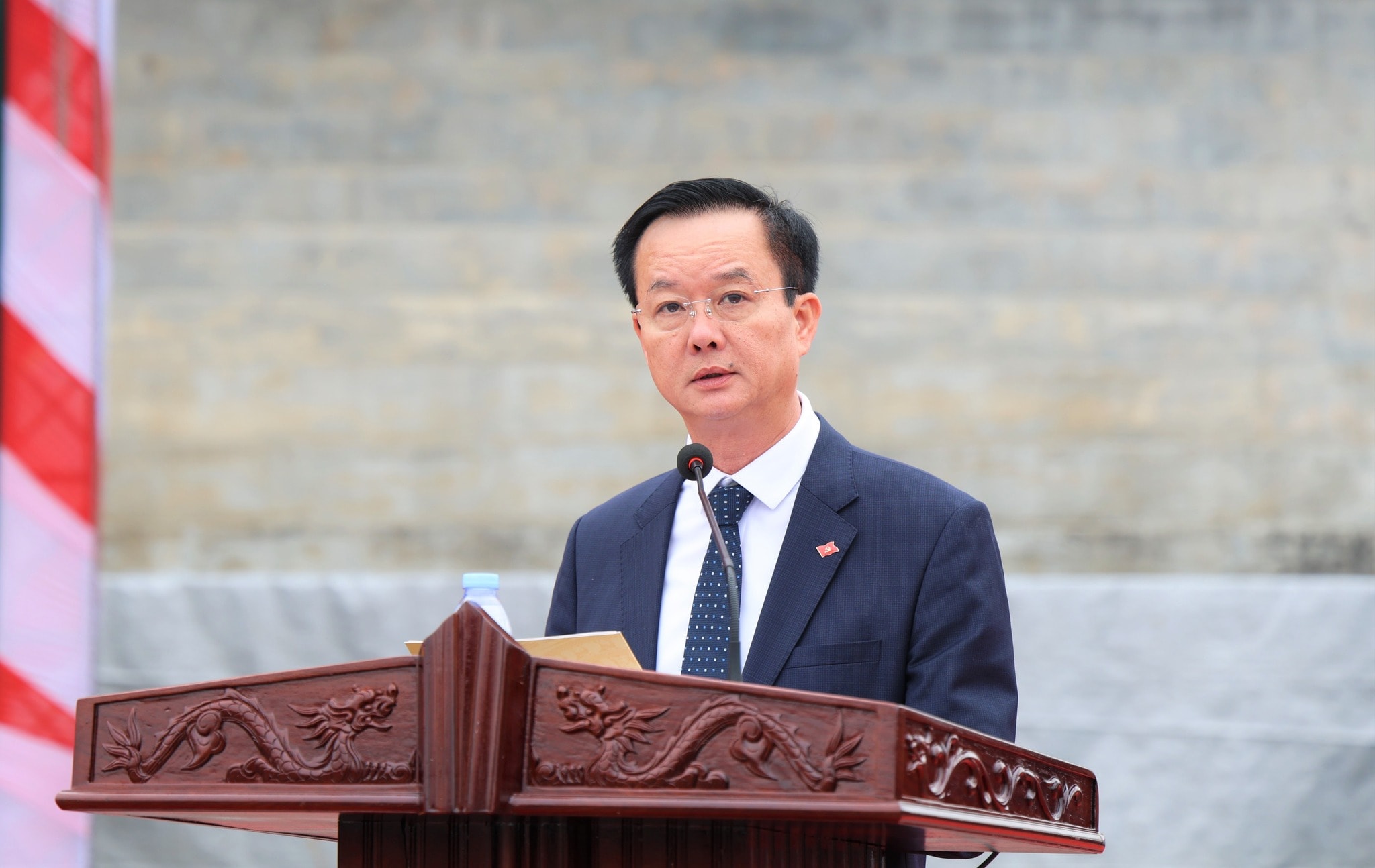 Phó Chủ tịch Thường trực UBND tỉnh Hà Tĩnh Trần Báu Hà phát biểu tại điểm giao nhận quân số 1 Ban chỉ huy phòng thủ khu vực 1 - Nam Hồng Lĩnh