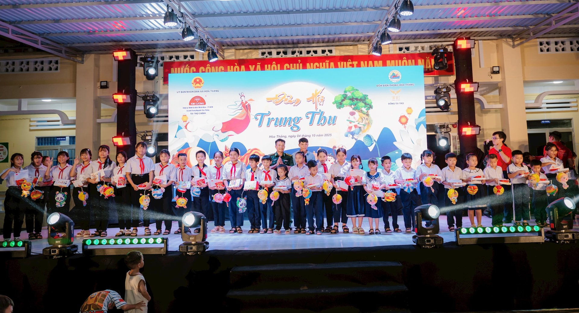 Cũng trong dịp này, UBND xã Hòa Thắng đã phối hợp với Đồn Biên phòng Hòa Thắng cùng các đơn vị, doanh nghiệp tổ chức chương trình “Đêm hội Trung thu” vui tươi, ấm áp dành cho các em thiếu nhi trên địa bàn xã.