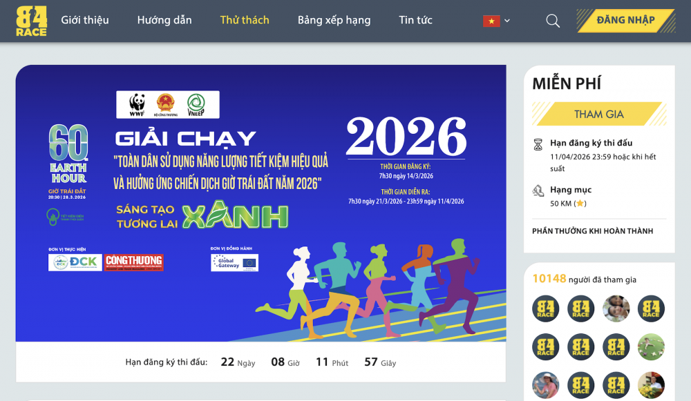 Giải chạy trực tuyến diễn ra trong khuôn khổ Lễ phát động “Toàn dân sử dụng năng lượng tiết kiệm hiệu quả và hưởng ứng Chiến dịch Giờ Trái đất năm 2026” do Cục Đổi mới sáng tạo, Chuyển đổi xanh và Khuyến công (Bộ Công Thương) phối hợp cùng Tạp chí Công Thương tổ chức trên ứng dụng tập luyện thể thao 84RACE.