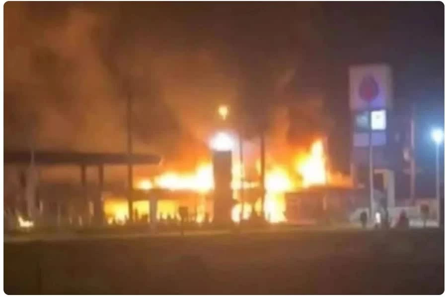 Hỏa hoạn bùng phát tại một trạm xăng PTT bị đánh bom ở huyện Cho Airong thuộc tỉnh Narathiwat (Thái Lan) vào khuya 10/1. (Nguồn: Bangkok Post)