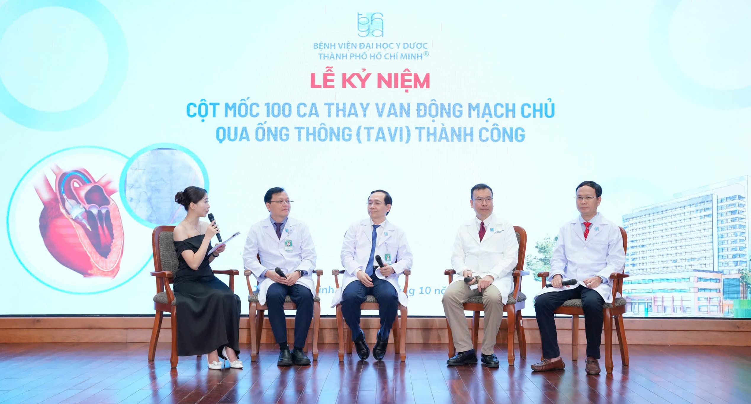 Theo thông cáo báo chí, ngày 16-10, Bệnh viện Đại học Y Dược TPHCM tổ chức lễ kỷ niệm thực hiện thành công 100 ca thay van động mạch chủ qua ống thông (TAVI - Transcatheter Aortic Valve Implantation), đánh dấu bước tiến quan trọng trong điều trị bệnh lý van tim tại Việt Nam.