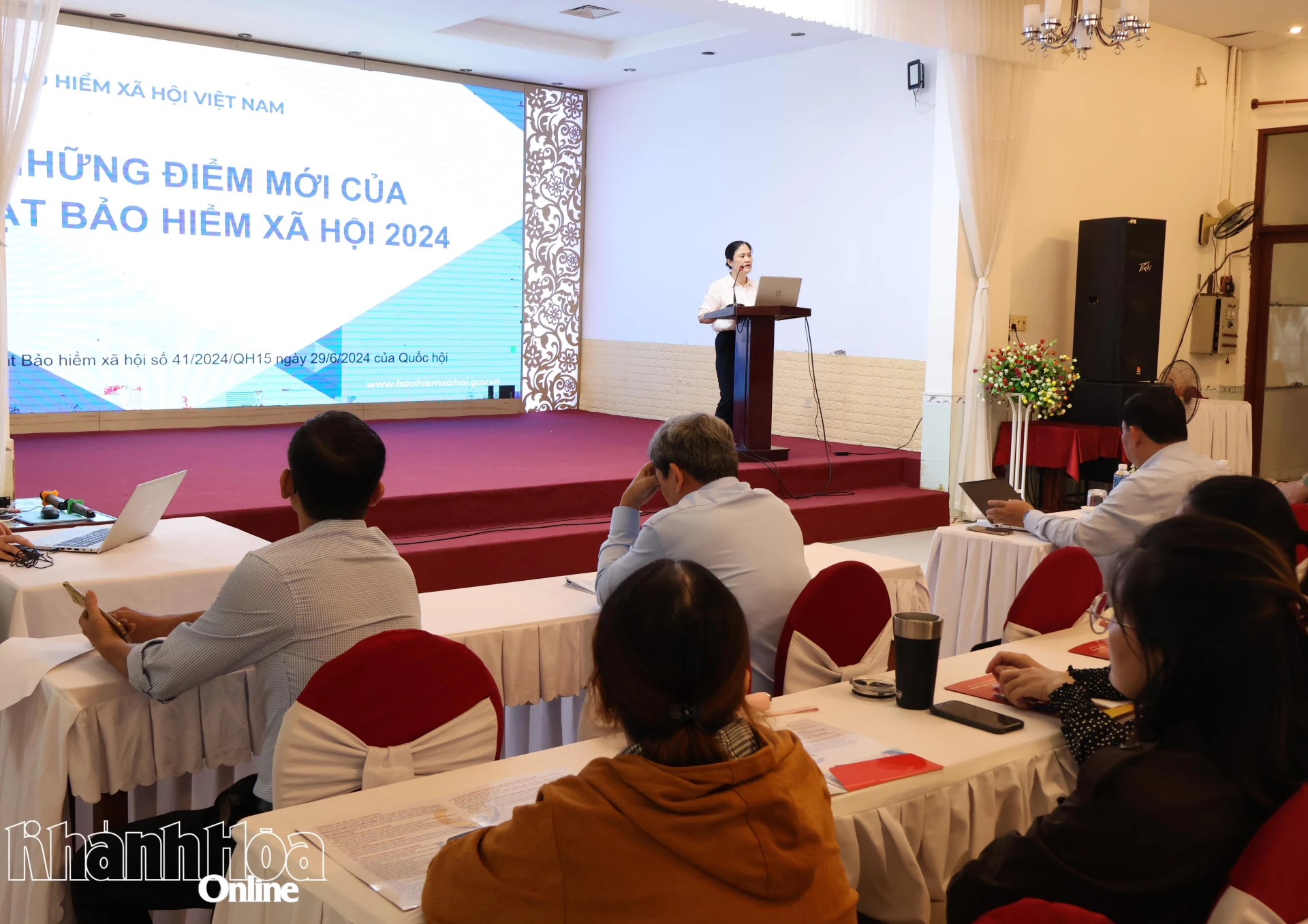 Báo cáo viên truyền đạt nội dung những điểm mới của Luật Bảo hiểm xã hội 2024.