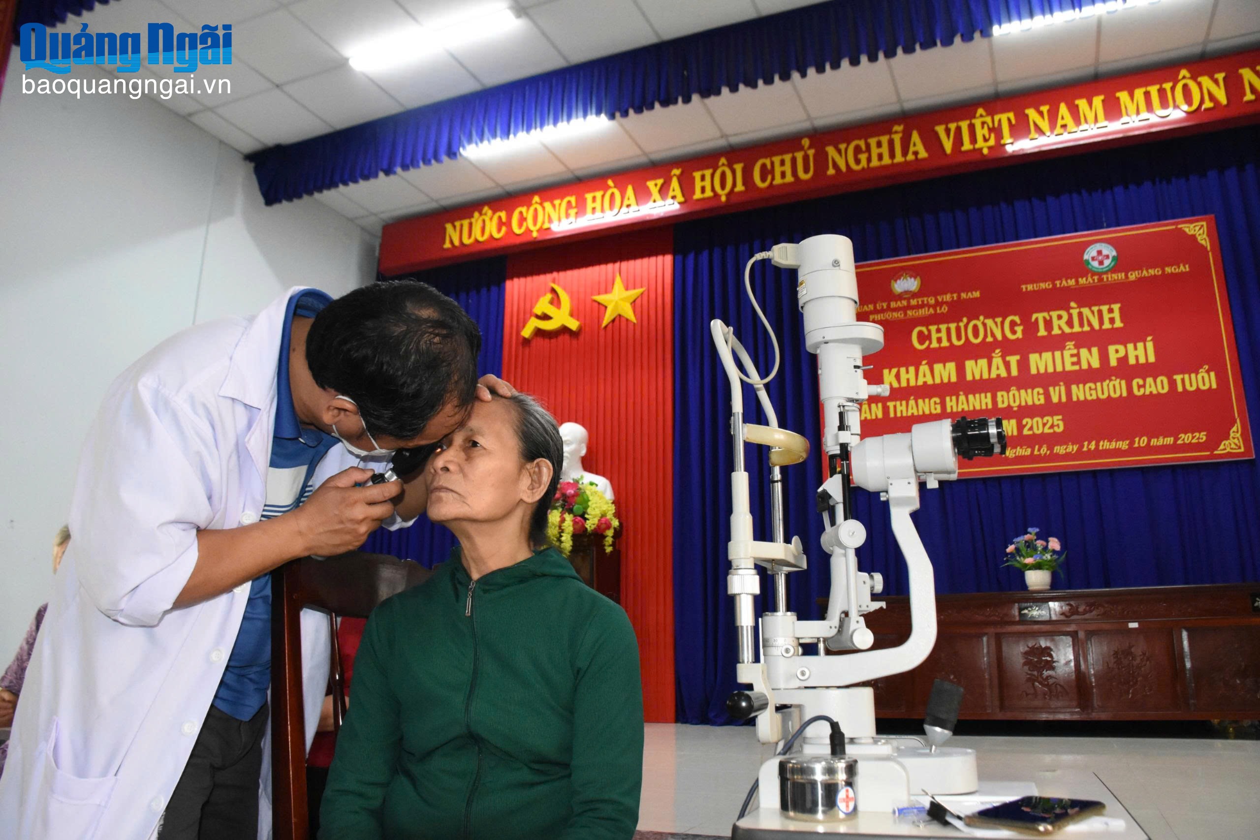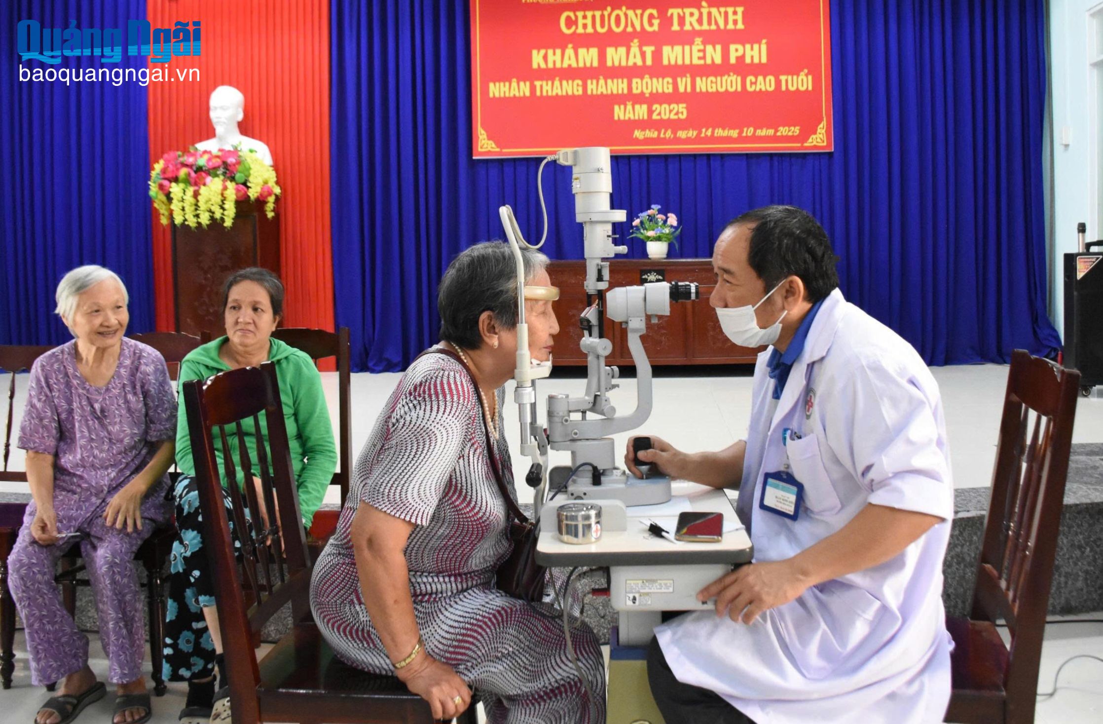 Hơn 100 người cao tuổi ở phường Nghĩa Lộ đã được thăm khám mắt.
