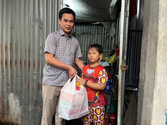 Đại diện chính quyền địa phương đến tặng quà và ít tiền cho cha con cháu Thanh Bình