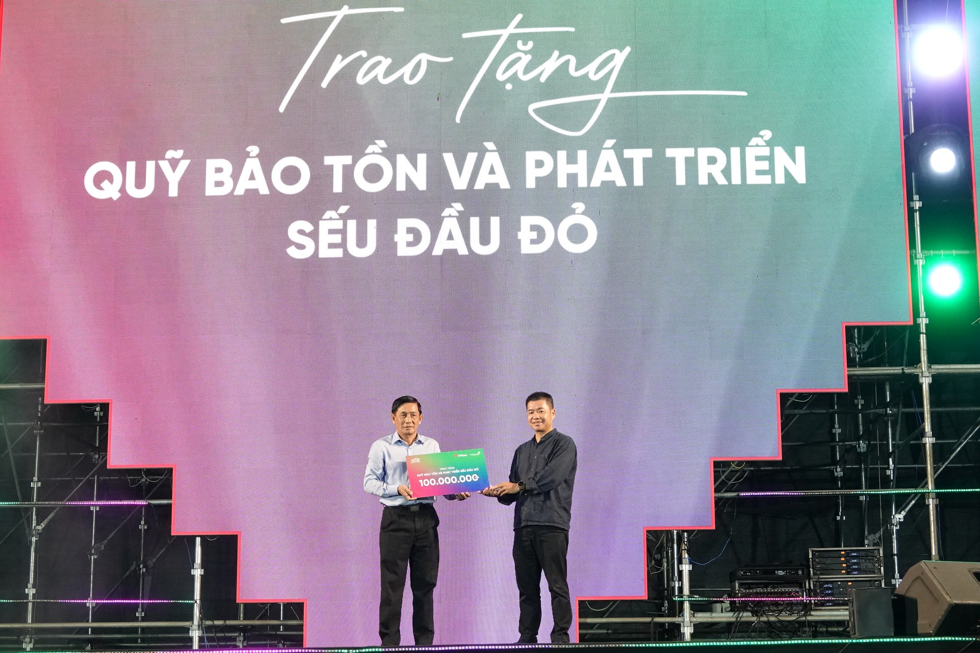Ban tổ chức giải VPBank Đất Sen Hồng Music Marathon 2025 tặng kinh phí đóng góp vào việc nghiên cứu bảo tồn Sếu đầu đỏ cho tỉnh Đồng Tháp.