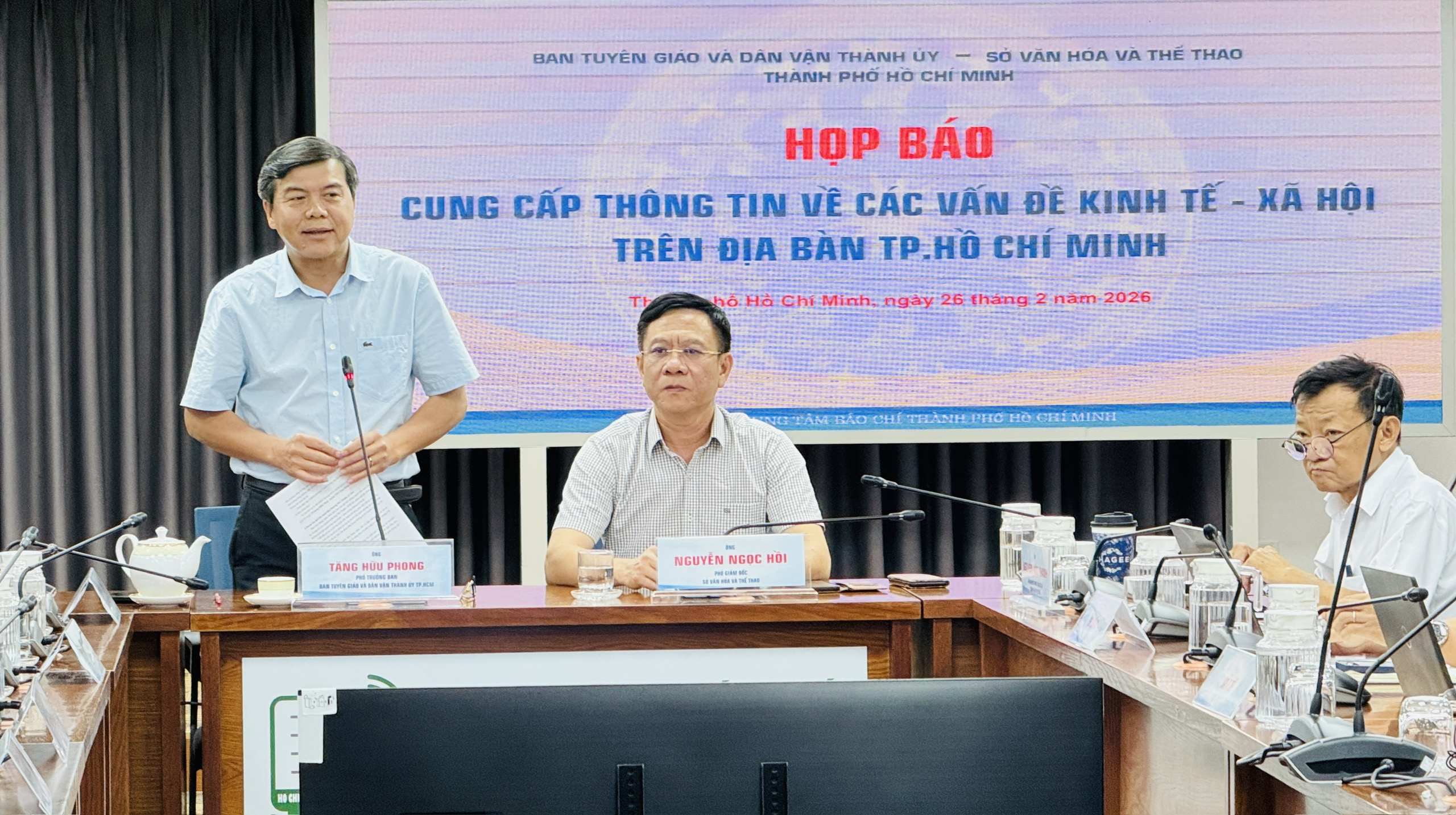 Chiều 26-2, Ban Tuyên giáo và Dân vận Thành ủy cùng Sở Văn hóa và Thể thao TPHCM tổ chức họp báo cung cấp thông tin về các vấn đề kinh tế - xã hội trên địa bàn TPHCM.
