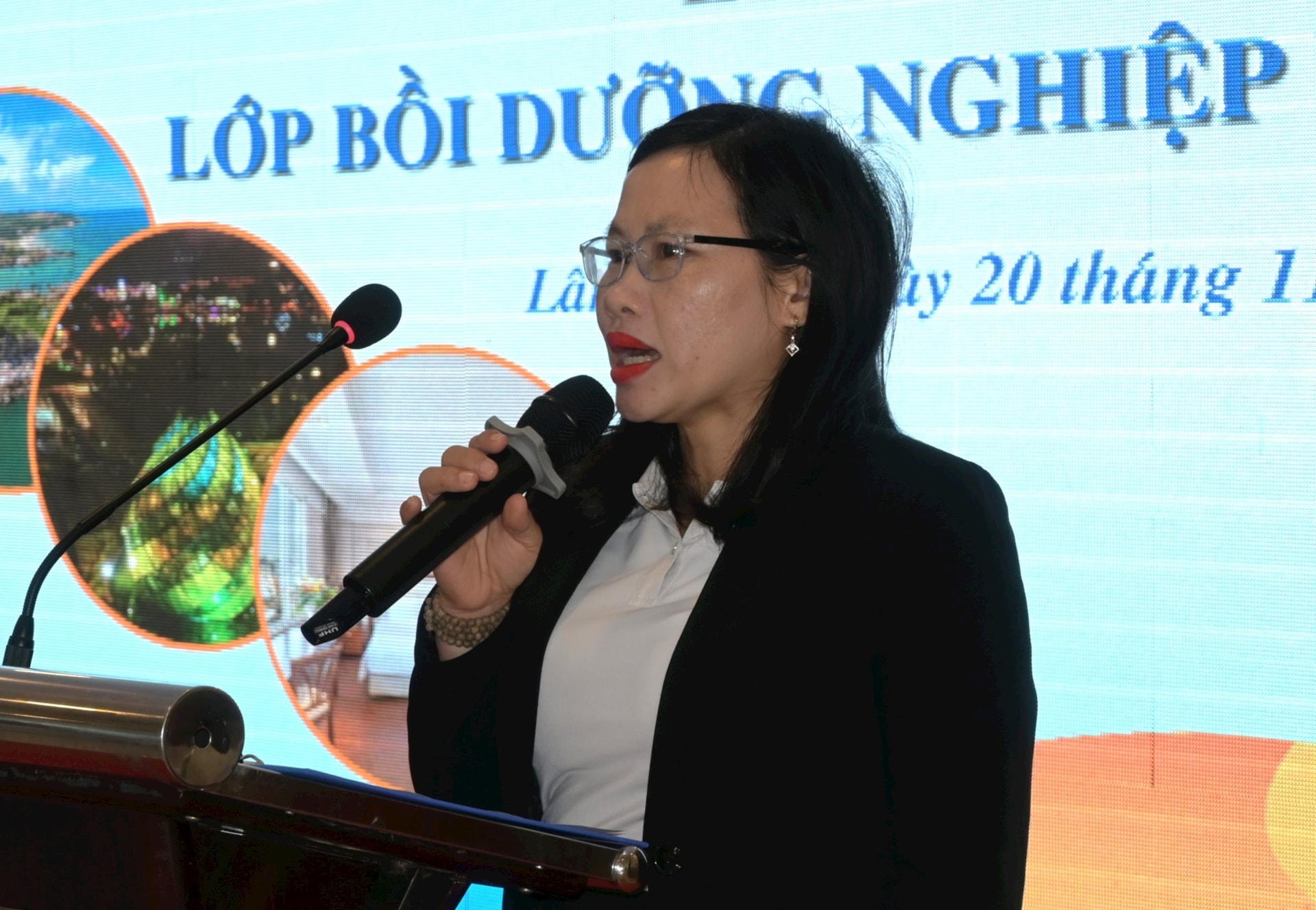 Phát biểu khai mạc, bà Bùi Thị Cẩm Hường, Phó Trưởng phòng Quản lý Du lịch, nhấn mạnh việc tổ chức lớp bồi dưỡng nhằm nâng cao trình độ nghiệp vụ cho đội ngũ lao động ngành du lịch, đáp ứng yêu cầu phát triển du lịch chuyên nghiệp trong giai đoạn mới.