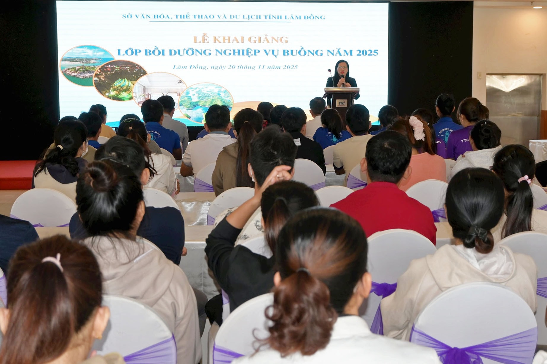 Dự lớp khai giảng có đại diện Hiệp hội Du lịch tỉnh, lãnh đạo các phòng nghiệp vụ thuộc Sở Văn hóa, Thể thao và Du lịch tỉnh, cùng 150 học viên đến từ các cơ sở kinh doanh lưu trú và khu, điểm du lịch khu vực phía Đông tỉnh Lâm Đồng.