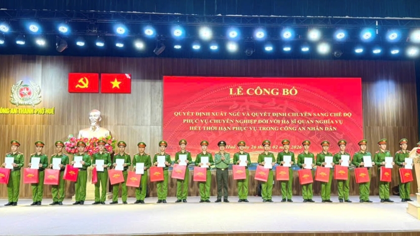 Dự và chủ trì buổi lễ có Đại tá Dương Văn Thoan, Phó Giám đốc Công an TP. Huế cùng đại diện lãnh đạo các phòng nghiệp vụ trực thuộc và chỉ huy công an các đơn vị có chiến sĩ nghĩa vụ.