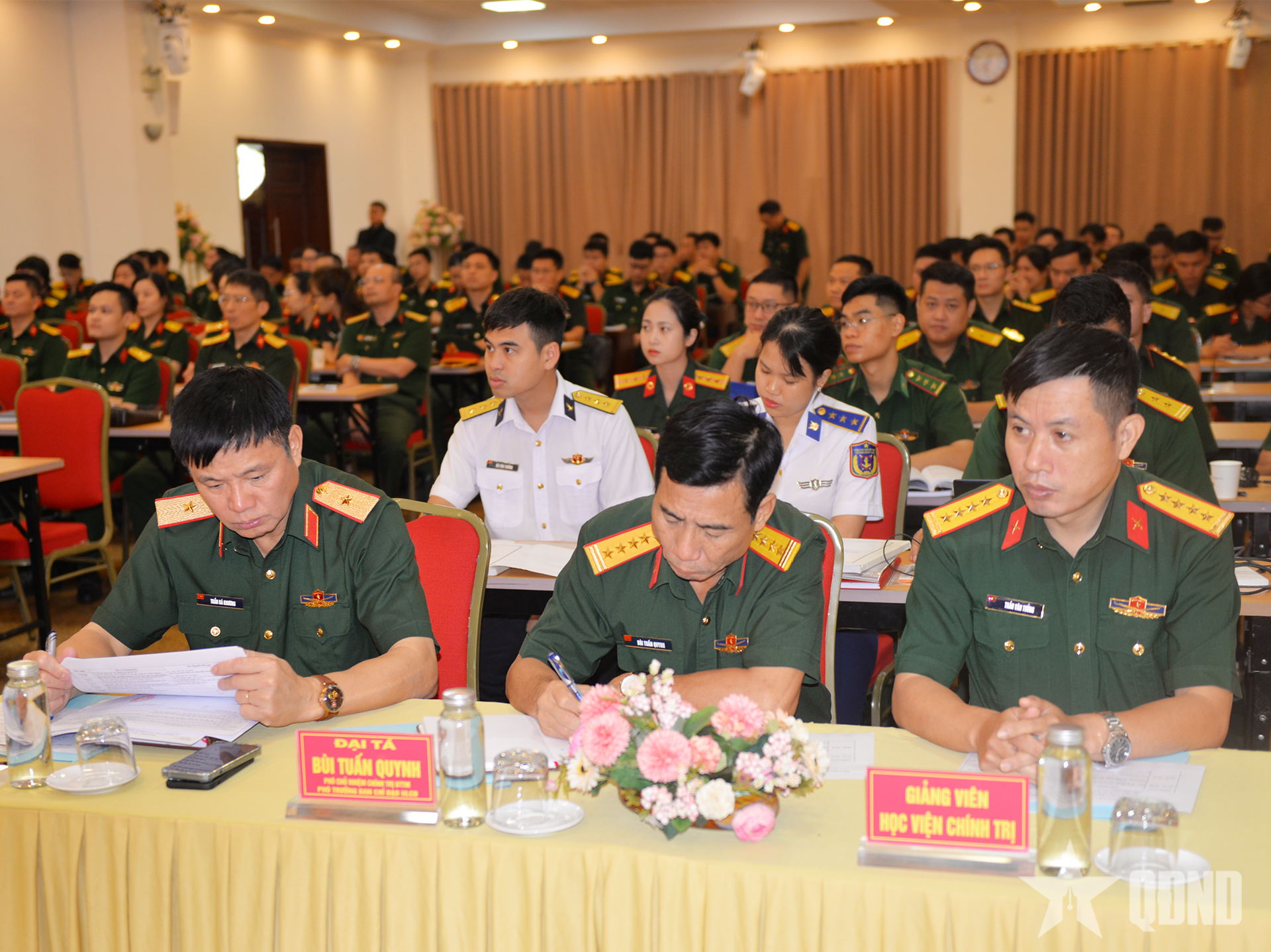 Đại tá Nguyễn Văn Đại yêu cầu học viên tích cực, chủ động học tập, nghiên cứu; trao đổi, làm rõ những vấn đề lý luận và thực tiễn, quan điểm, chủ trương, đường lối của Đảng về quốc phòng, an ninh. Qua đó, thống nhất nhận thức, đề cao tinh thần trách nhiệm, kiên quyết đấu tranh làm thất bại mọi âm mưu, thủ đoạn của các thế lực thù địch; góp phần xây dựng cơ quan, đơn vị vững mạnh toàn diện.