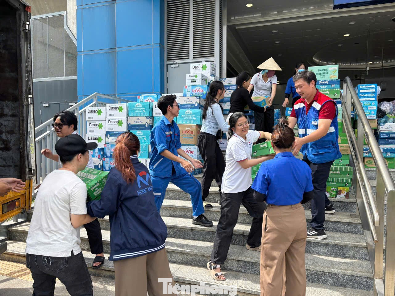 Tại điểm tiếp nhận, tập thể người lao động của công ty TNHH MTV Đường sắt đô thị số 1 TPHCM phối hợp cùng các lực lượng Mặt trận Tổ quốc làm việc xuyên đêm đến 3h sáng hôm sau để hoàn tất phân loại và kiểm nhập.