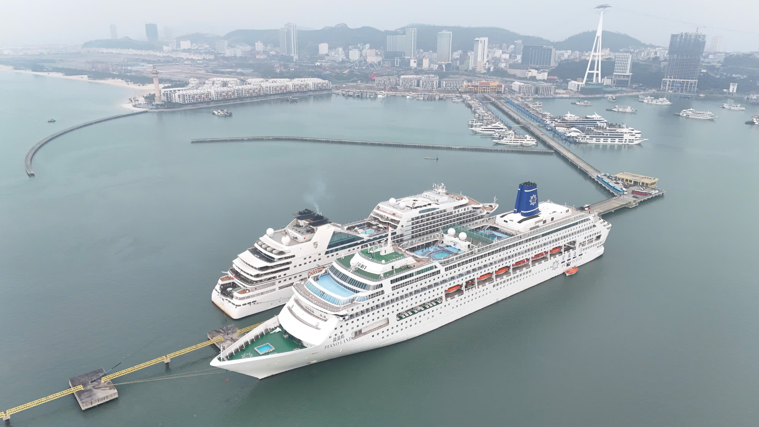 Hai du thuyền Seabourn Encore (quốc tịch Bahamas) chở du khách châu Âu và Piano Land chở khách chủ yếu đến từ Hồng Kông cập cảng trong không khí hân hoan của ngày đầu xuân.