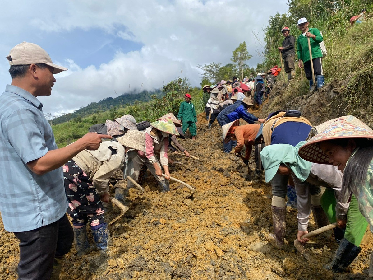 Với tinh thần đoàn kết và quyết tâm cao, lực lượng địa phương cùng quân đội đang khẩn trương san gạt đất đá, mở lại đường giao thông, giúp người dân ổn định cuộc sống và trở lại sản xuất.