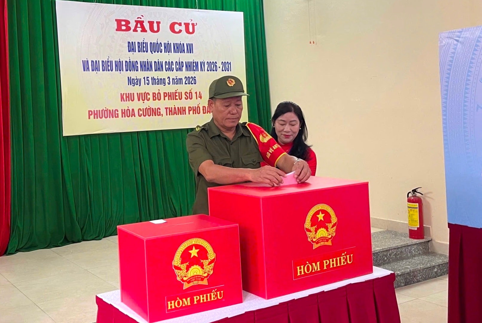 Sau nghi thức chào cờ và tuyên bố khai mạc được tổ chức trang trọng, khu vực bỏ phiếu tổ dân phố Hòa Nam chính thức bước vào thời điểm thực hiện quyền bầu cử. Phó Chủ tịch UBND thành phố Trần Nam Hưng cùng các cử tri tiến hành bỏ phiếu, lựa chọn những đại biểu tiêu biểu vào Quốc hội khóa XVI và HĐND các cấp nhiệm kỳ 2026 - 2031.
