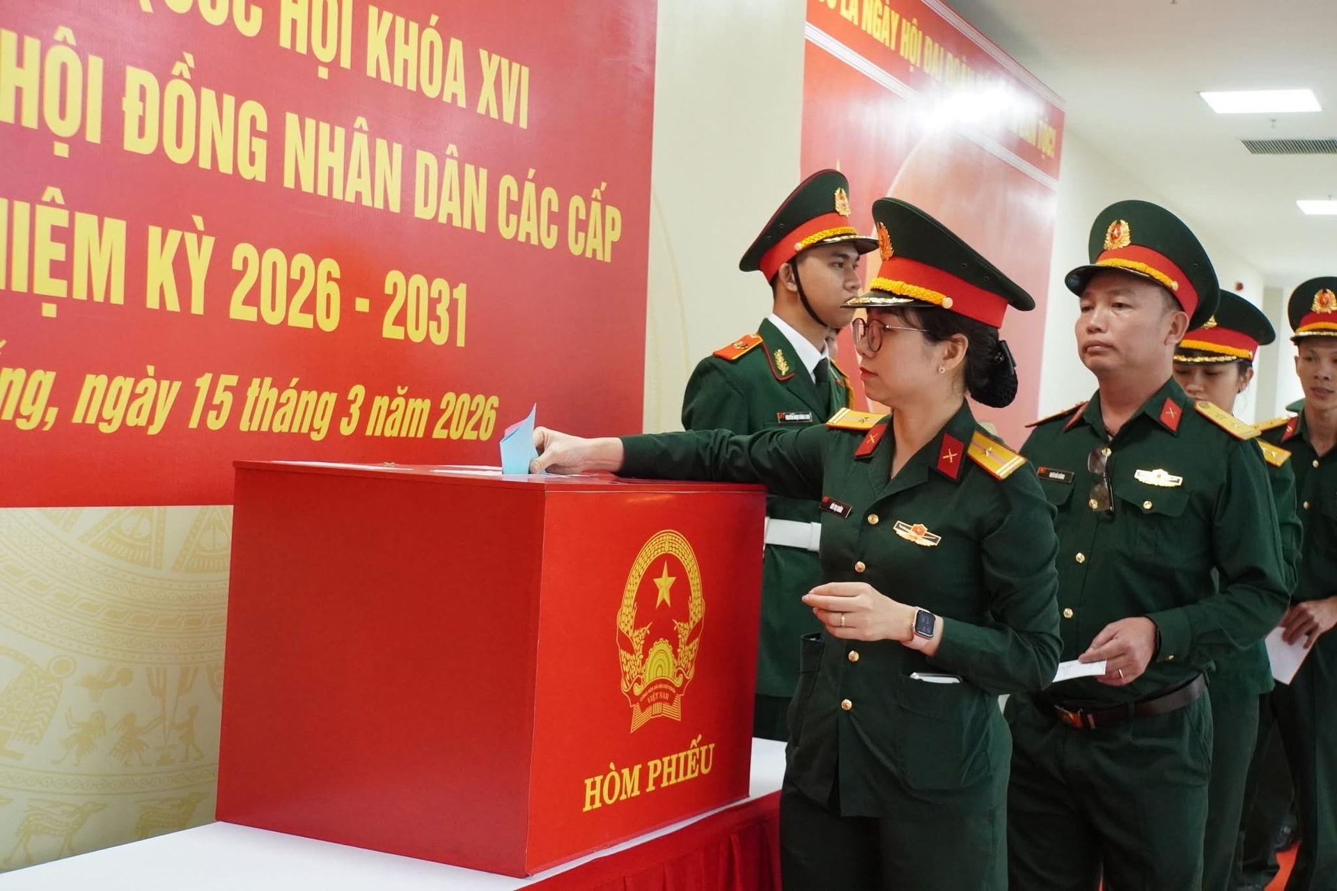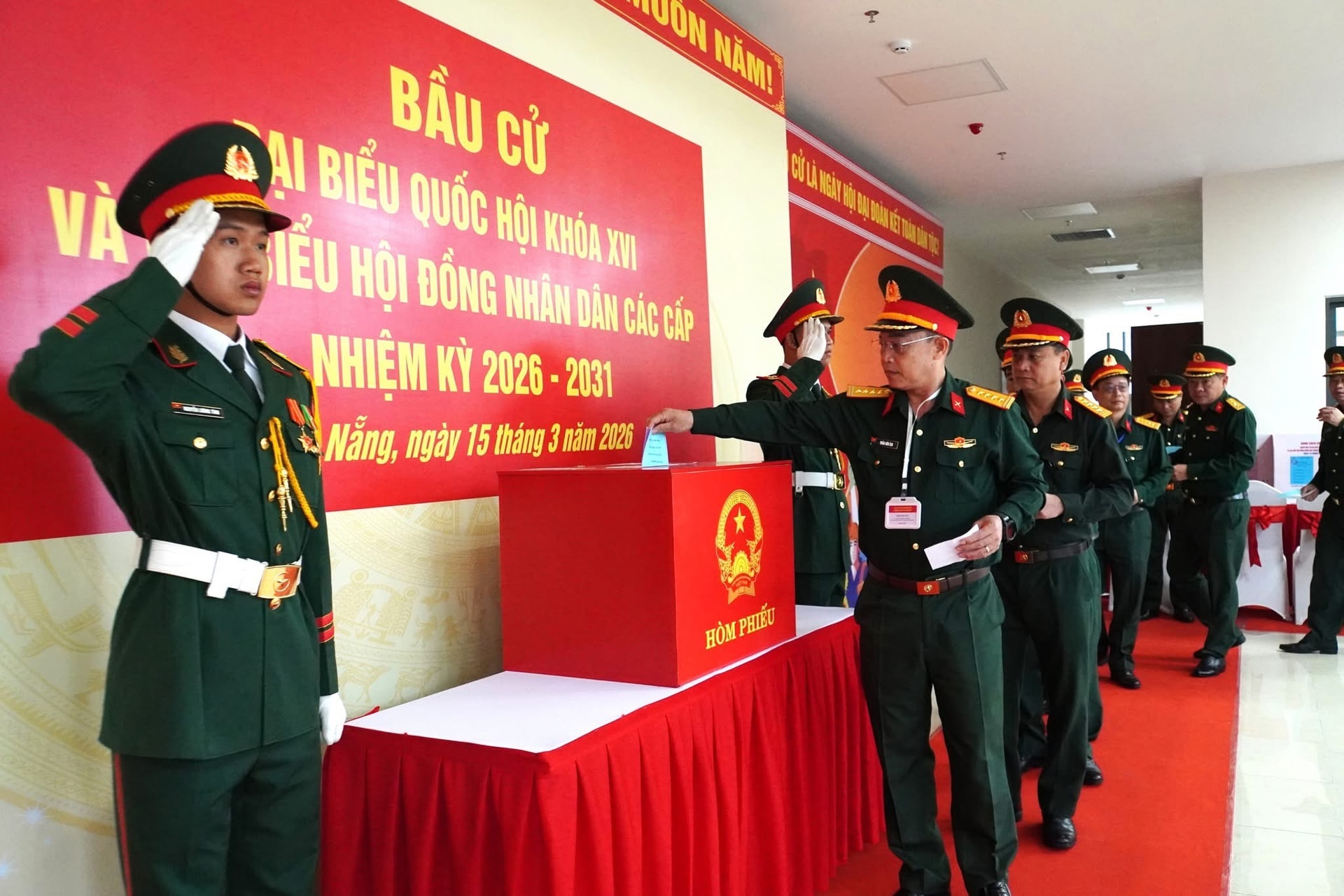 * Sáng 15/3, tại điểm bầu cử số 24, Cơ quan Bộ Chỉ huy Quân sự thành phố Đà Nẵng, cán bộ, chiến sĩ Bộ Chỉ huy Quân sự thành phố nô nức tham gia bầu cử đại biểu Quốc hội khóa XVI và đại biểu HĐND các cấp nhiệm kỳ 2026 - 2031.