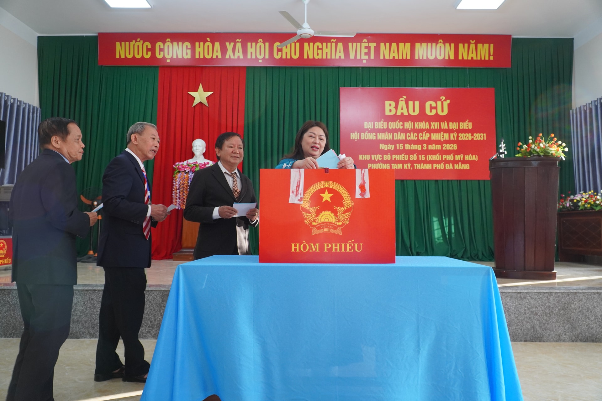 * Hòa trong không khí ngày hội non sông, cử tri tổ dân phố Mỹ Hòa, phường Tam Kỳ nô nức đi bầu cử đại biểu Quốc hội khóa XVI và đại biểu HĐND các cấp nhiệm kỳ 2026 - 2031 tại khu vực bỏ phiếu số 15.