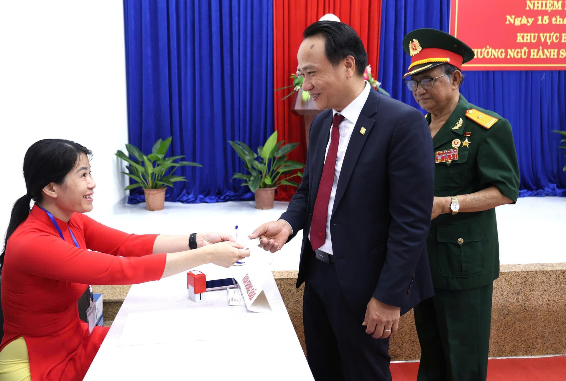 Phó Bí thư Thành ủy Ngô Xuân Thắng bỏ phiếu bầu cử tại khu vực bỏ phiếu số 13, phường Ngũ Hành Sơn. Ảnh: ĐẮC MẠNH