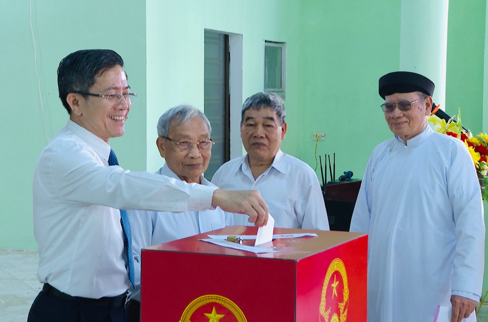 * Sáng 15/3, Phó Chủ tịch UBND thành phố Trần Nam Hưng dự lễ khai mạc và thực hiện quyền bầu cử tại khu vực bỏ phiếu tổ dân phố Hòa Nam, phường Bàn Thạch.