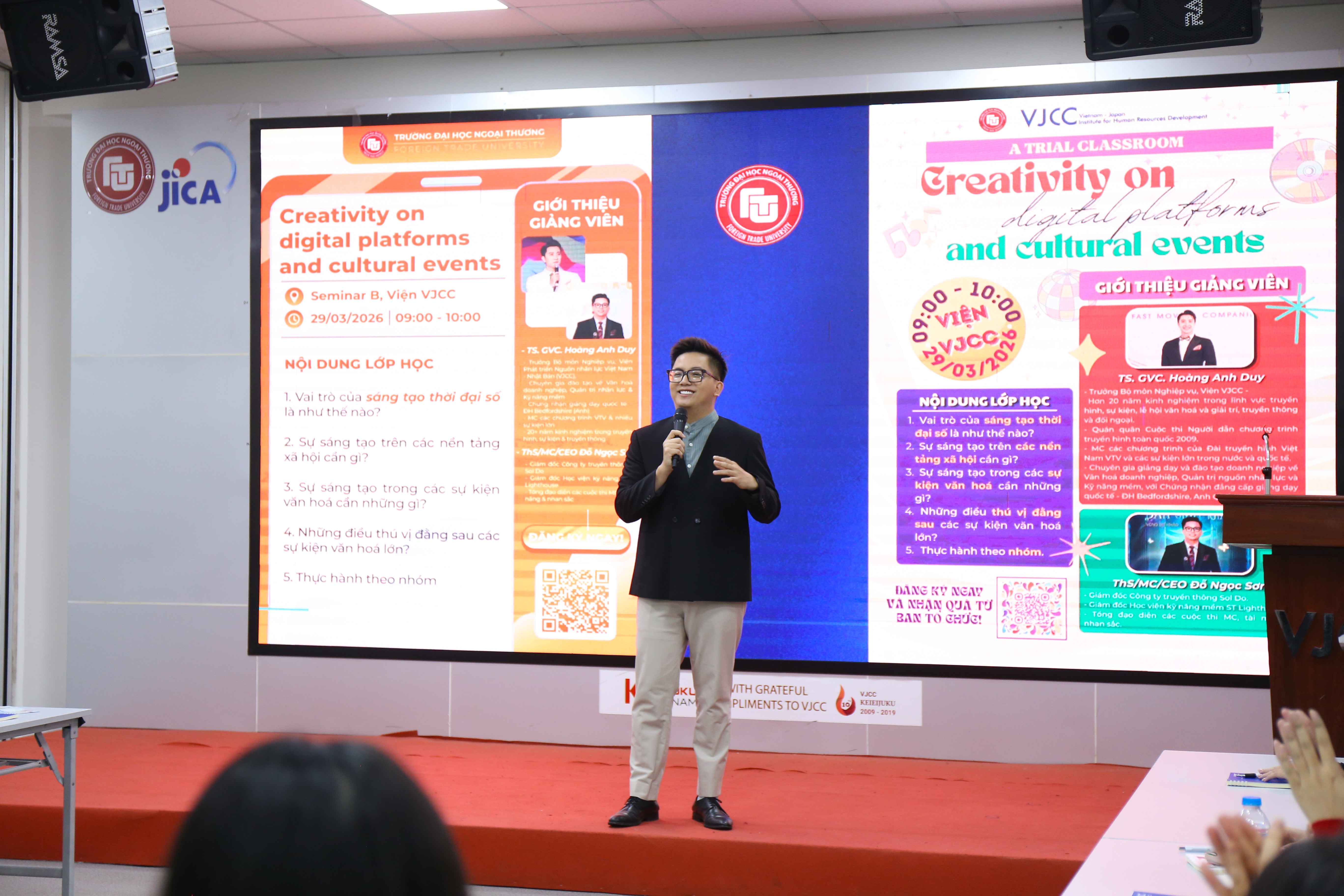 Điểm khiến ngày hội năm nay trở nên khác biệt không chỉ nằm ở quy mô người tham dự, mà còn ở cách tổ chức giàu tính trải nghiệm. Bên cạnh sân khấu chính và khu tư vấn chuyên sâu, Trường Đại học Ngoại thương mở 12 lớp học trải nghiệm với các chủ đề gắn chặt với xu hướng nghề nghiệp mới như: tư duy thiết kế và đổi mới sáng tạo; kinh doanh sáng tạo và công nghiệp văn hóa; quản lý công nghiệp; công nghệ với AI, khoa học máy tính, khoa học dữ liệu; công nghệ tài chính; kiểm toán tích hợp công nghệ; luật dân sự; luật kinh tế; kinh tế số; thương mại điện tử; quản trị nhân lực số.