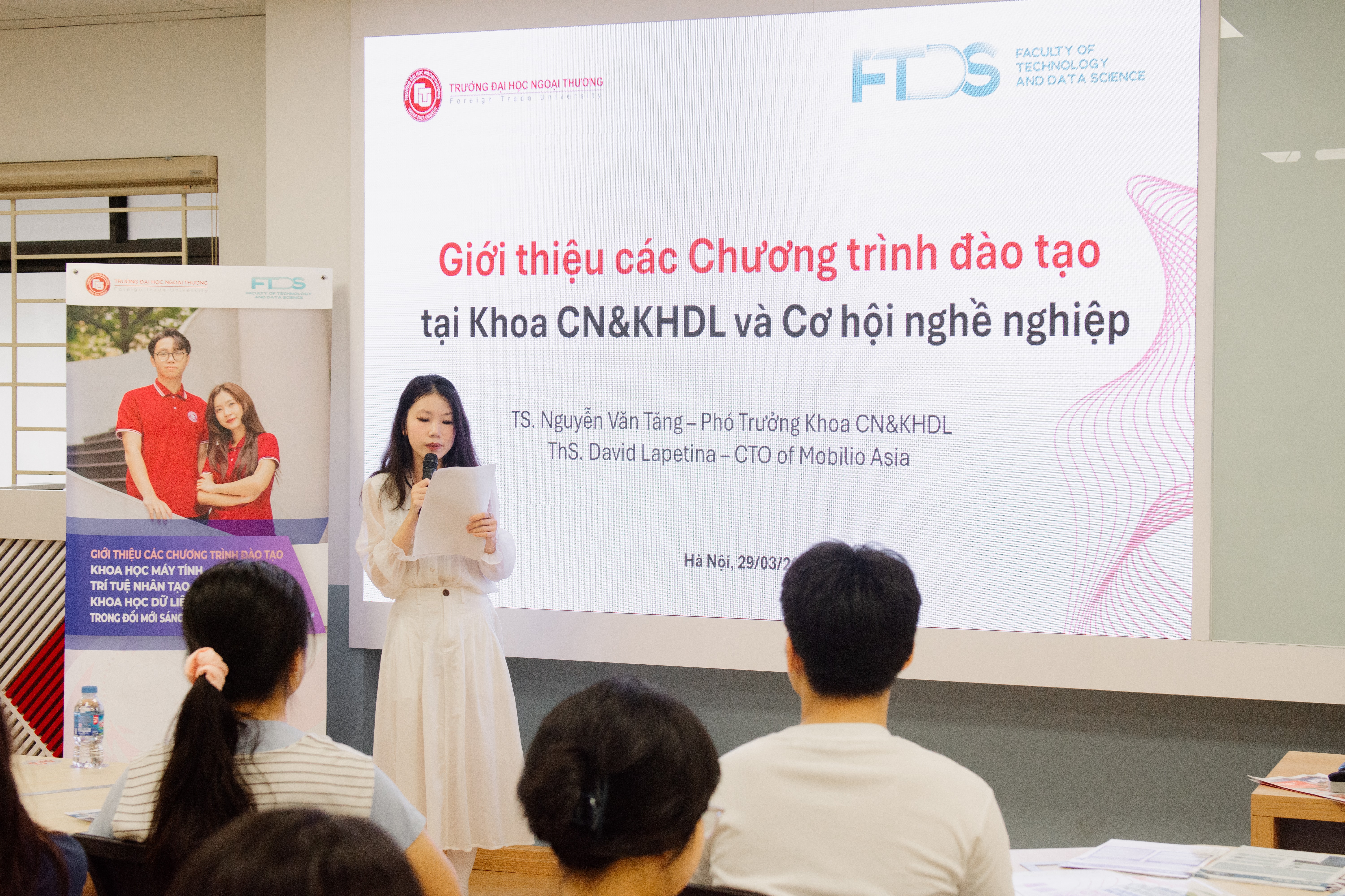 Tiếp nối chương trình, ThS Phạm Thanh Hà - Phó Trưởng Phòng Phụ trách Phòng Quản lý đào tạo đã giới thiệu tổng quan về các chương trình đào tạo cũng như các phương thức xét tuyển năm 2026 của Trường Đại học Ngoại Thương.