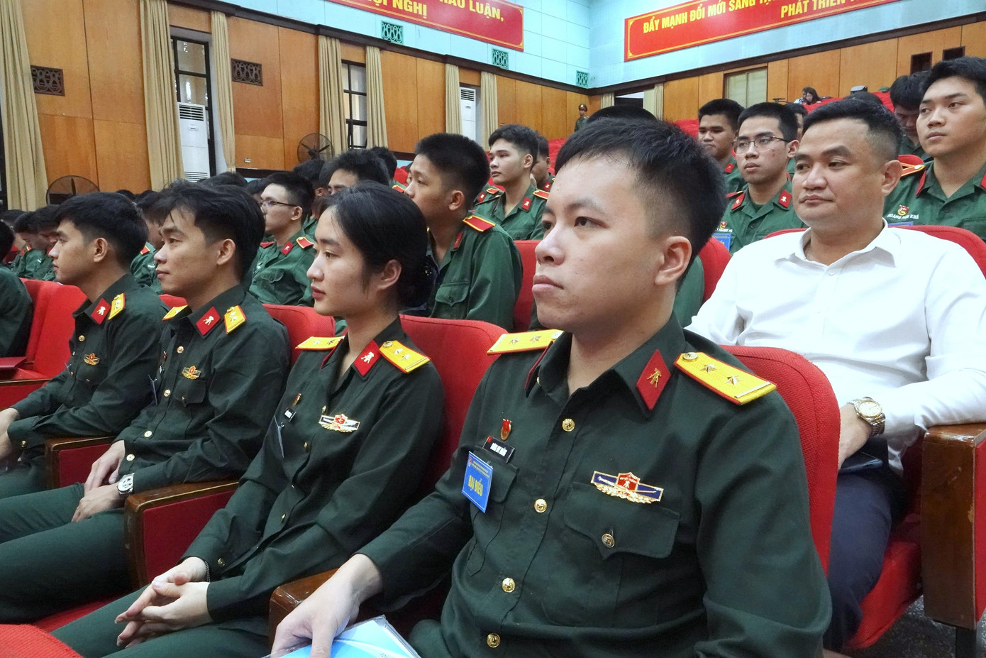Phó Chính ủy Học viện KTQS yêu cầu, trong thời gian tới, cần tăng cường giáo dục chính trị, tư tưởng, nâng cao nhận thức để ĐVTN có lý tưởng đẹp, trách nhiệm cao, có tinh thần đoàn kết và ý thức tổ chức kỷ luật tốt; có kiến thức chuyên sâu, năng động, sáng tạo, dám nghĩ, dám làm, có khả năng tự lực, tự rèn, thích ứng nhanh với thực tiễn, không ngừng phấn đấu vươn lên làm chủ khoa học, công nghệ.