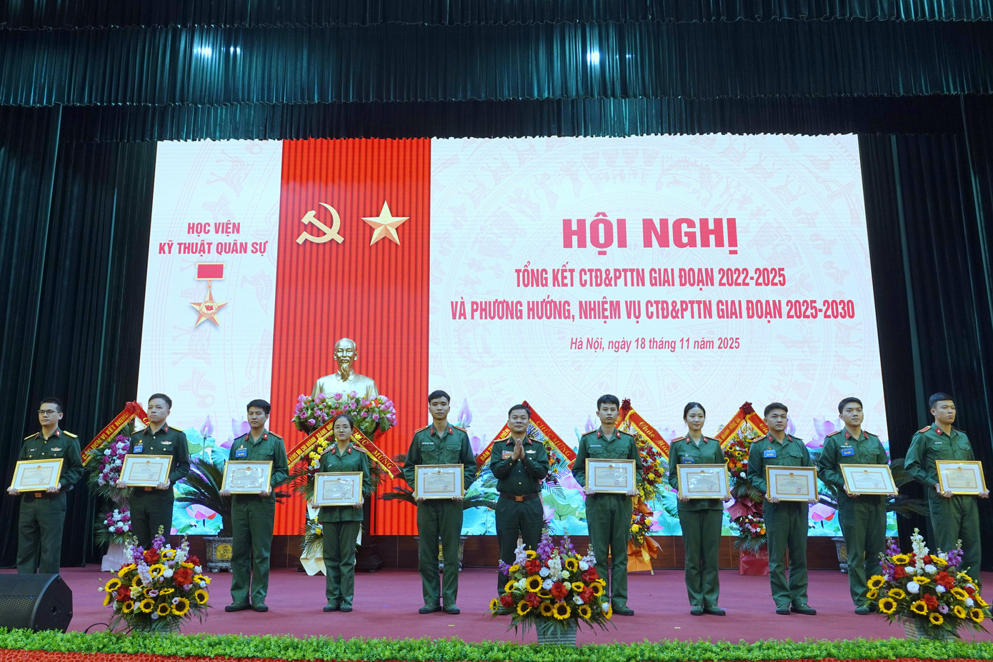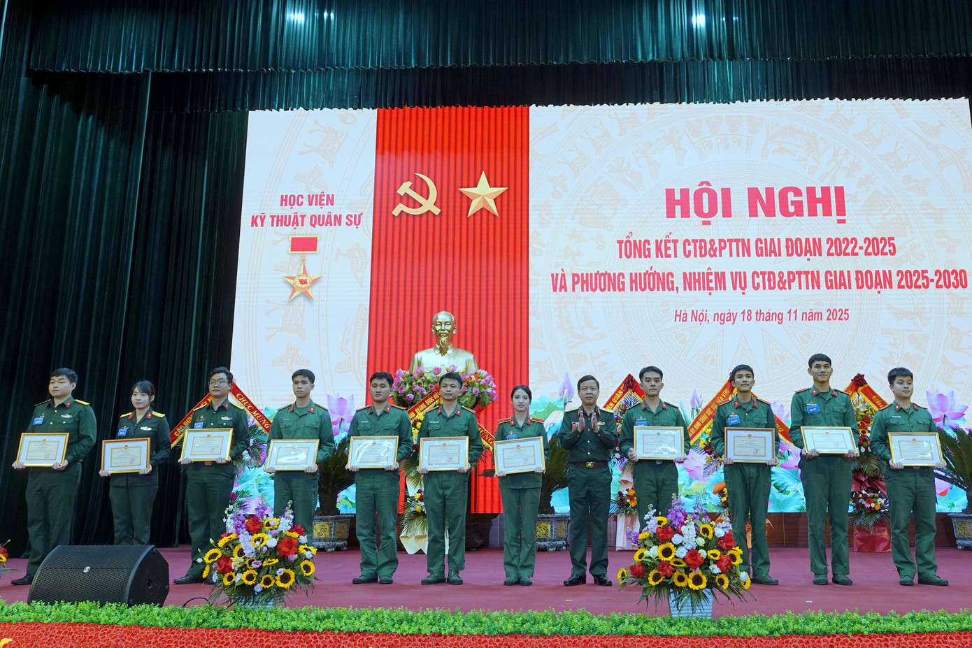 Sáng 18/11, tại Hà Nội, Học viện Kỹ thuật Quân sự (KTQS) tổ chức Hội nghị tổng kết công tác Đoàn và phong trào thanh niên giai đoạn 2022-2025, với sự tham gia của 145 cán bộ Đoàn, đoàn viên, thanh niên (ĐVTN) tiêu biểu, đại diện cho hơn 3 nghìn ĐVTN trong Học viện.