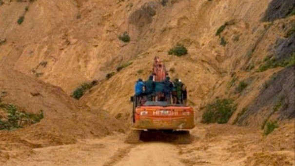 Các lực lượng dùng cáng khiêng bộ suốt 2 giờ đồng hồ trên tuyến đường sạt lở để đưa sản phụ đi sinh