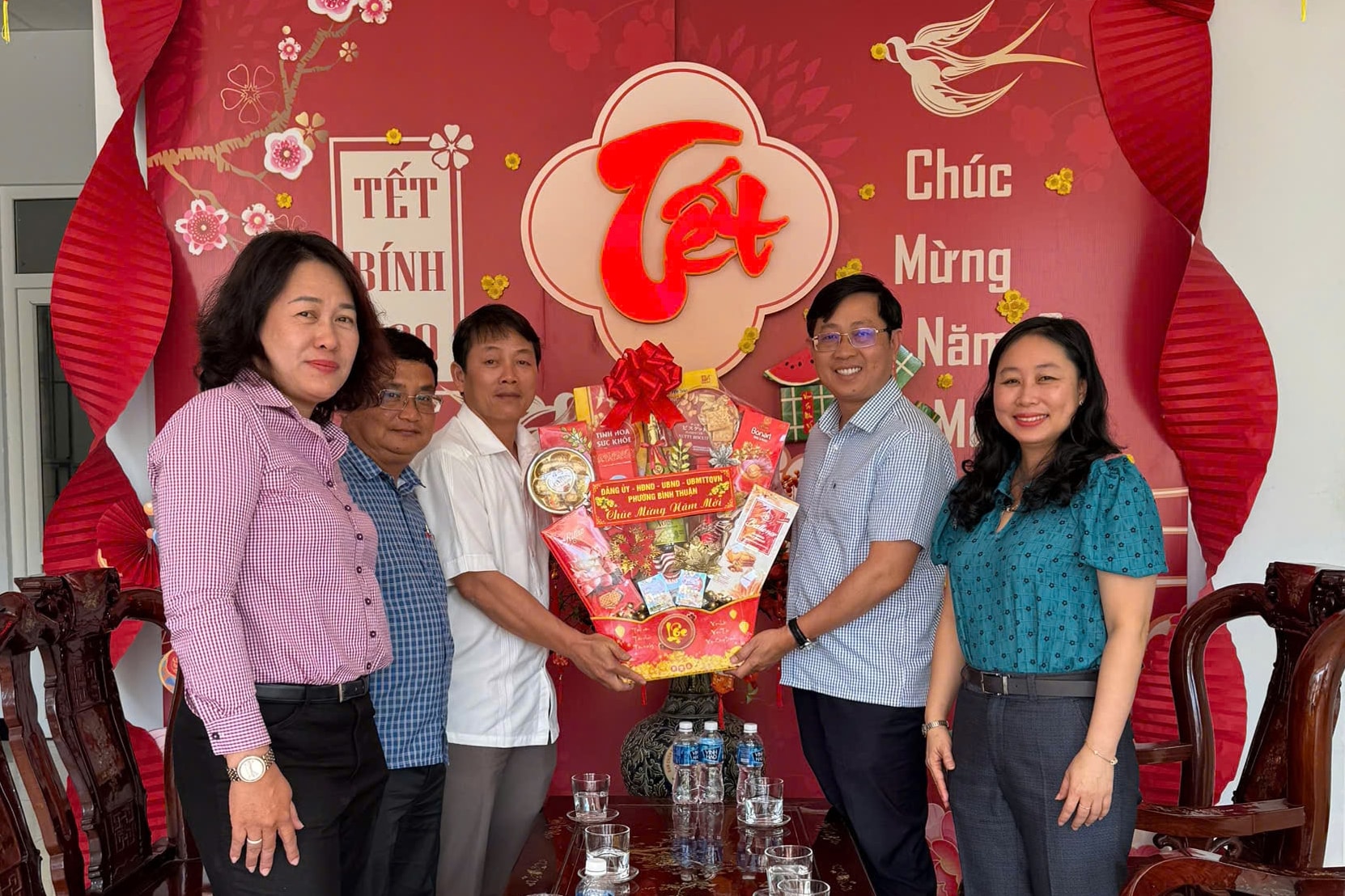 Ông Nguyễn Hữu Trung (thứ 2 từ trái qua) - Chủ tịch UBND phường Bình Thuận thăm, tặng quà gia đình chính sách tại địa phương nhân dịp Tết Bính Ngọ 2026