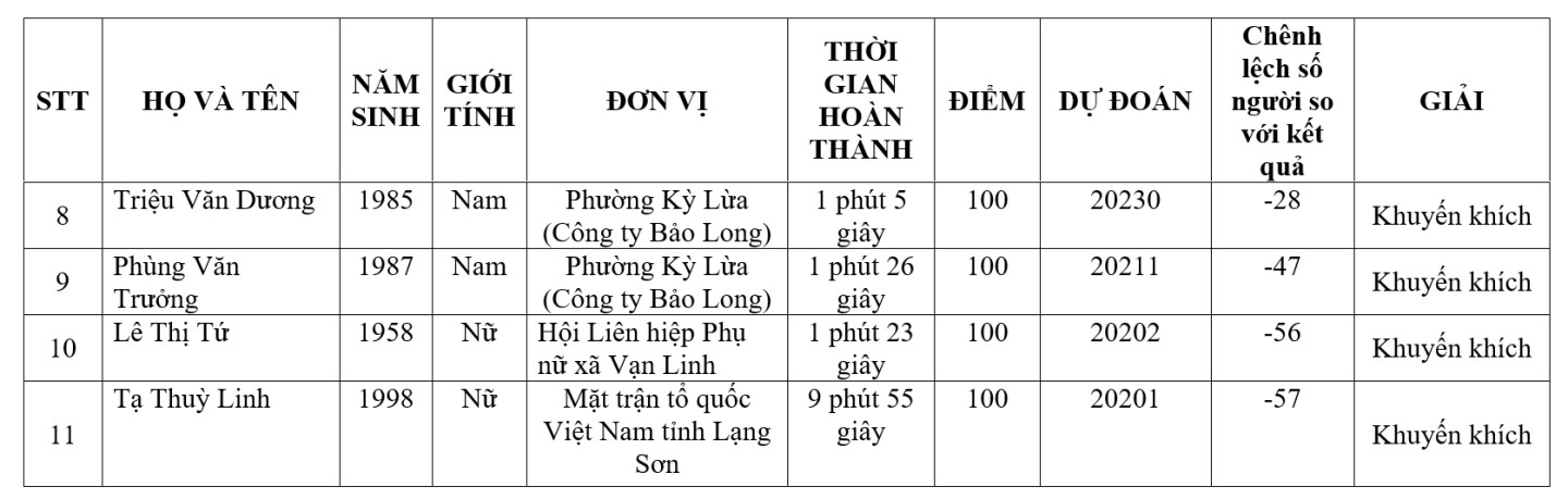 Danh sách thí sinh đoạt giải tuần thứ hai