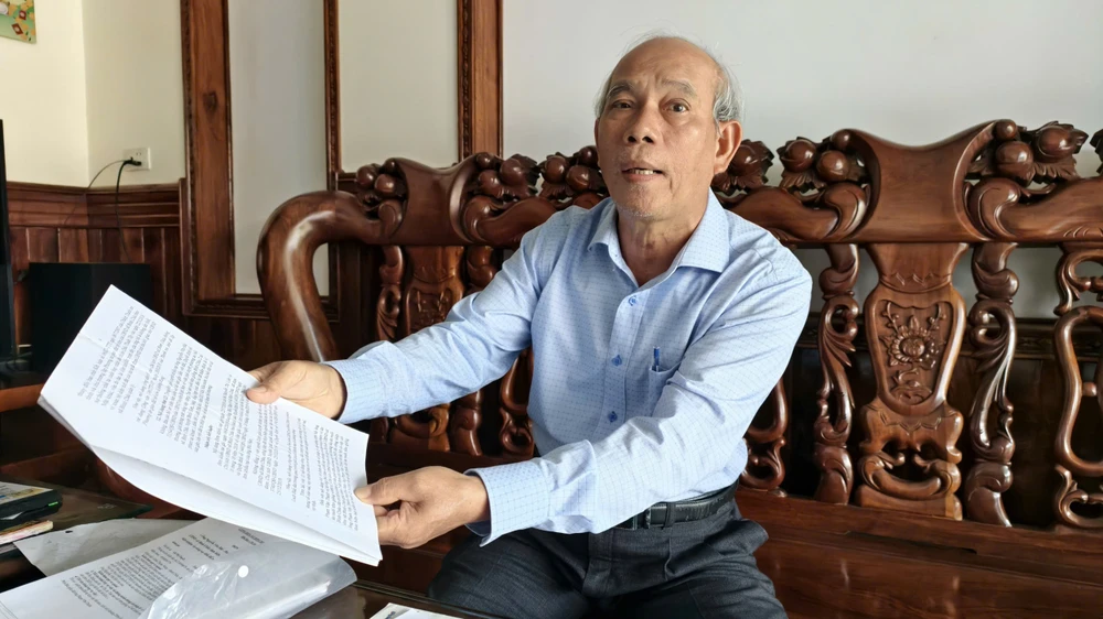 Ông Phạm Văn Trinh đã nhiều năm đòi bồi thường lô đất hồ tôm bị thu hồi nhưng chưa có kết quả. Ảnh: NGUYỄN YÊN