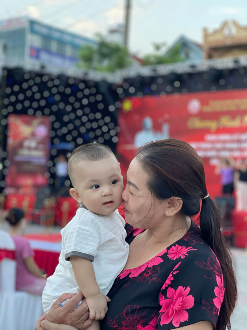Bà Thêm chụp ảnh cùng cháu ngoại