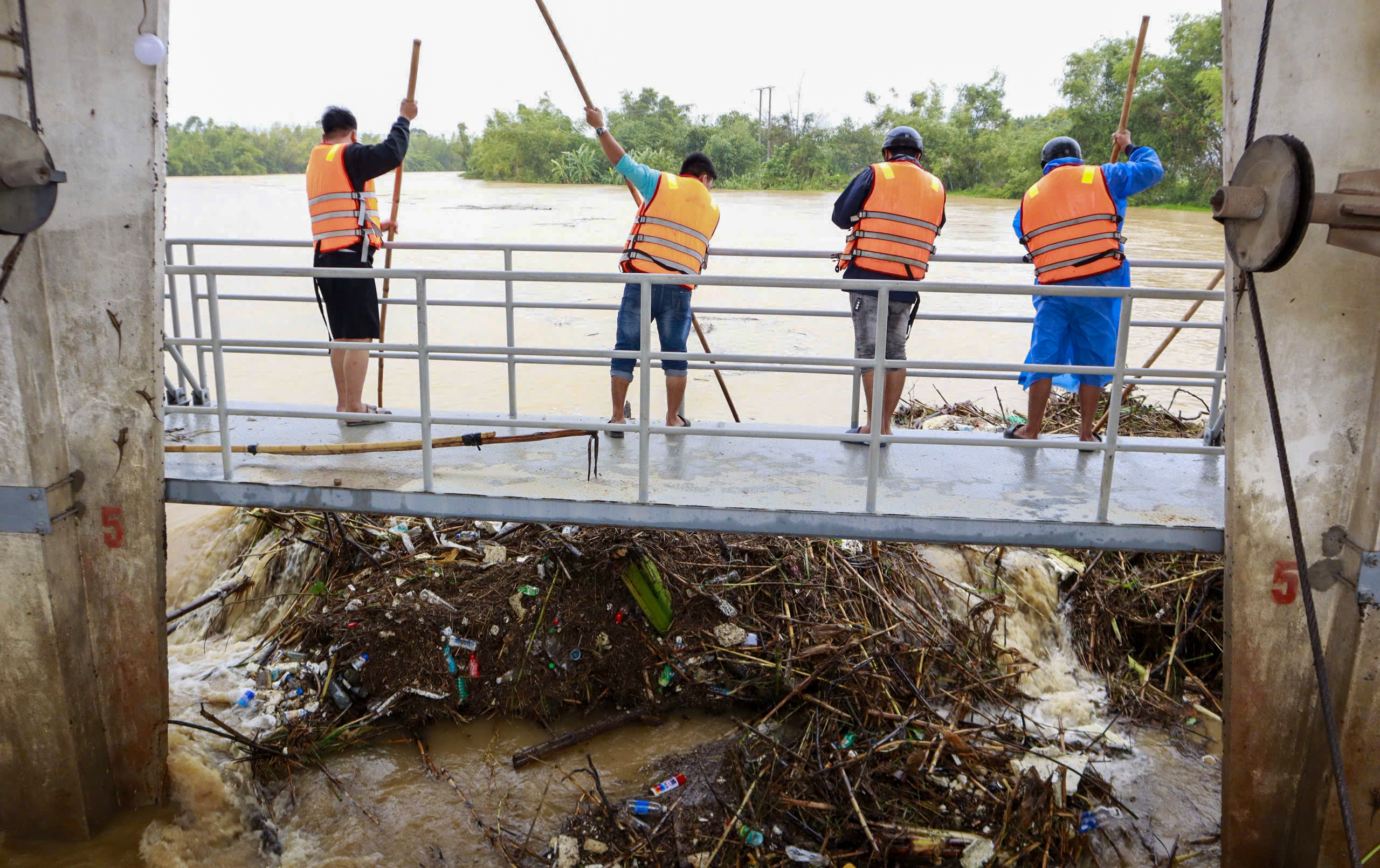 Theo ghi nhận, do mưa lớn kéo dài nhiều ngày qua, lượng rác, cây gỗ và vật liệu từ thượng nguồn bị nước lũ cuốn về, mắc kẹt dày đặc dưới chân cầu, gây ứ đọng dòng chảy. Lượng rác lớn cản dòng nước khiến nước dâng cao, gây nguy cơ tràn qua đập tràn và ảnh hưởng trực tiếp đến hoa màu, khu dân cư lân cận.
