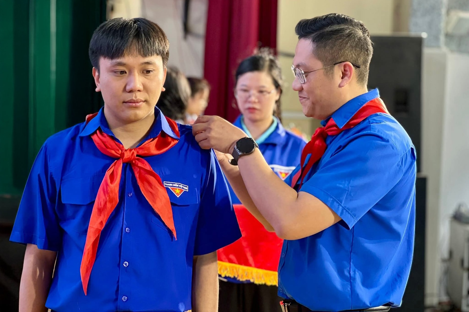 Phó Bí thư Tỉnh đoàn Lâm Đồng Đoàn Minh Tâm trao cấp hiệu cho Ban chỉ huy Liên đội