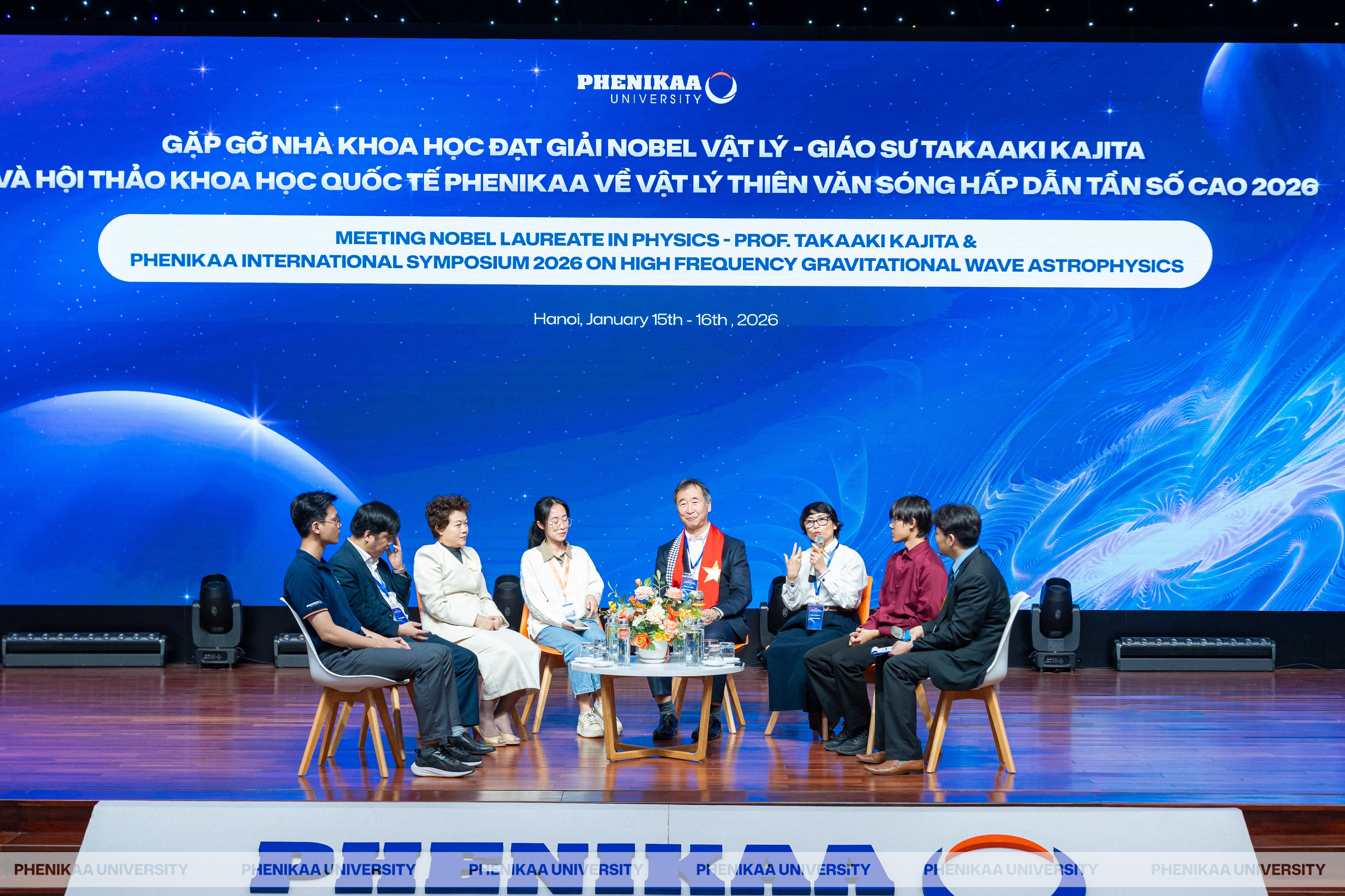 Trả lời câu hỏi này, GS. Takaaki Kajita nhấn mạnh vai trò của môi trường đại học nghiên cứu trong việc mở cánh cửa cho người học: “Phenikaa có thể giúp em làm được điều đó. Hãy kết nối với các thầy cô tại Đại học Phenikaa bởi trường cũng đang cùng hợp tác trong dự án.” Trao đổi ngắn gọn nhưng truyền cảm hứng này cho thấy tri thức khoa học không chỉ dành cho giới chuyên môn, mà có thể trở thành hành trình mà học sinh phổ thông bắt đầu từ sự chủ động kết nối, nuôi dưỡng đam mê và tìm kiếm cơ hội tham gia.