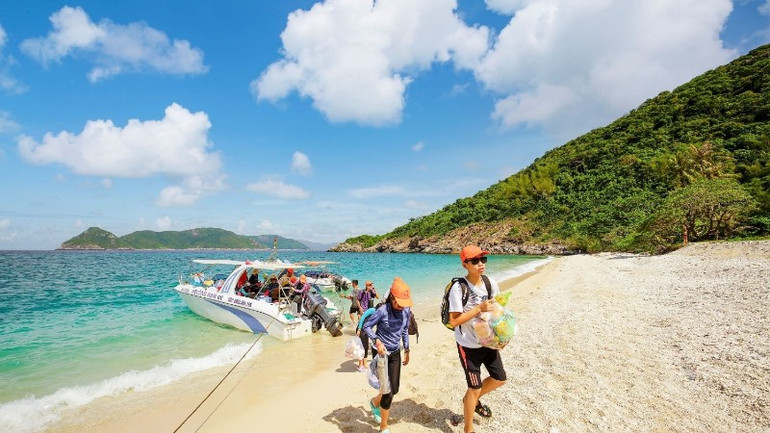 Khách du lịch tham quan, khám phá Côn Đảo vì cảnh quan nên thơ, biển trong sạch. (Ảnh: QUÝ HIỀN)