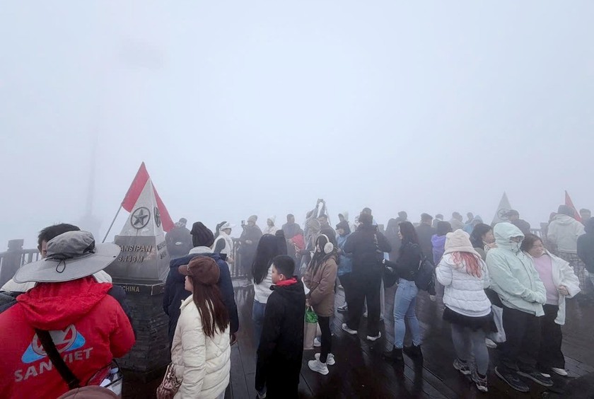Du khách lên đỉnh Phan Xi Păng trong ngày đầu năm mới. Ảnh: TL