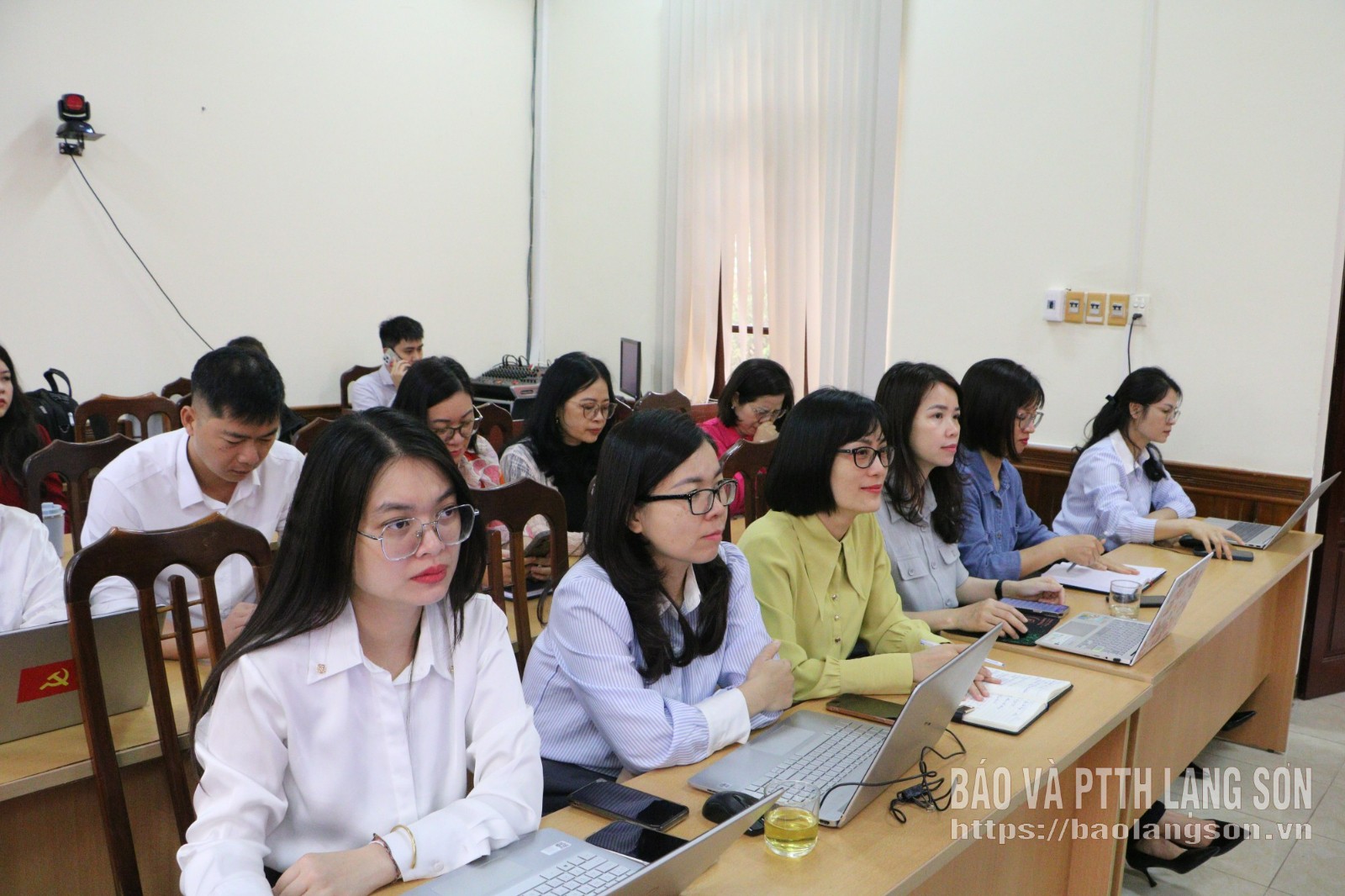 Các đại biểu dự hội nghị tại điểm cầu Báo và Phát thanh, Truyền hình Lạng Sơn
