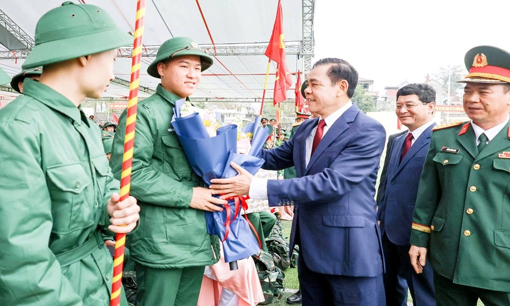 Chủ tịch UBND tỉnh Nghệ An tặng hoa chúc mừng các tân binh lên đường nhập ngũ