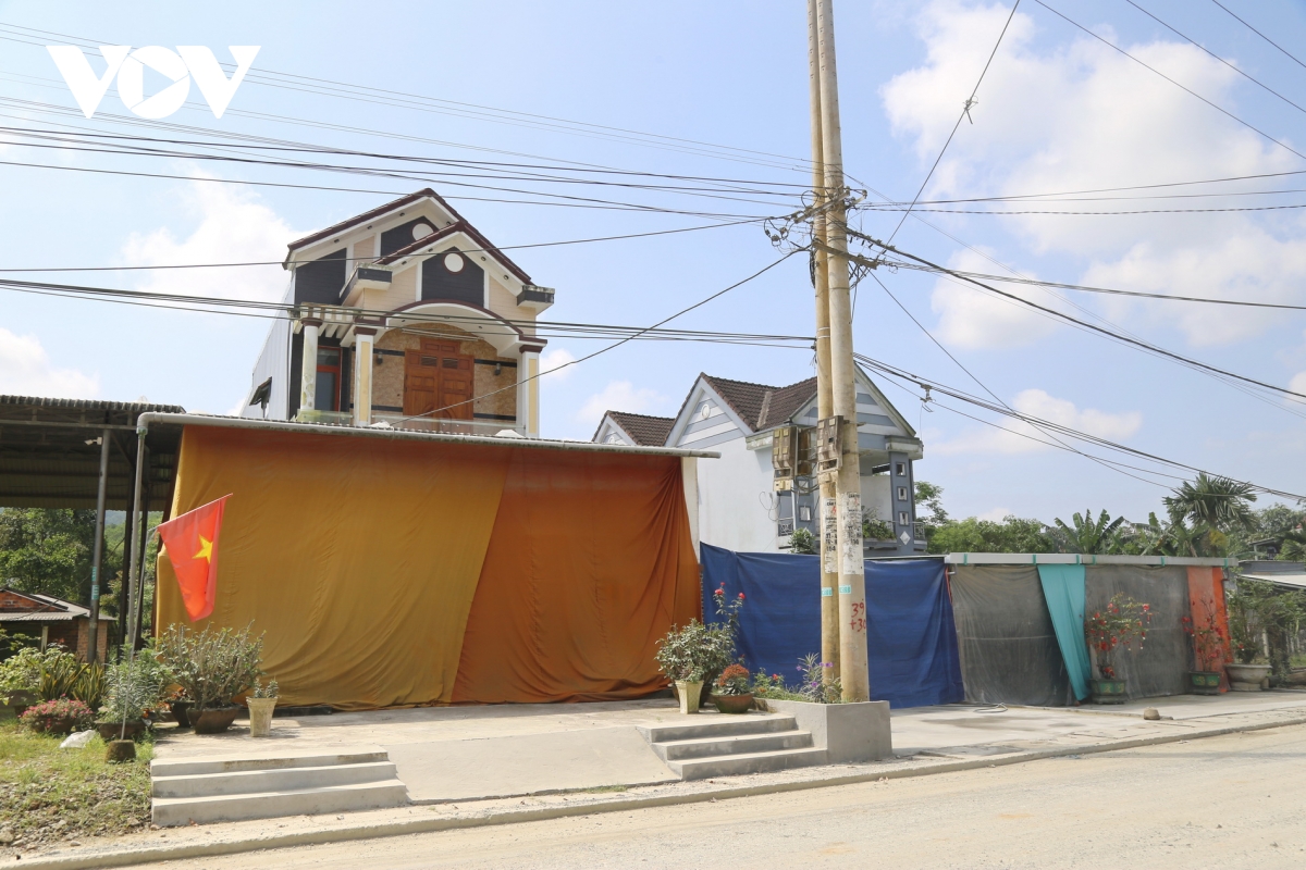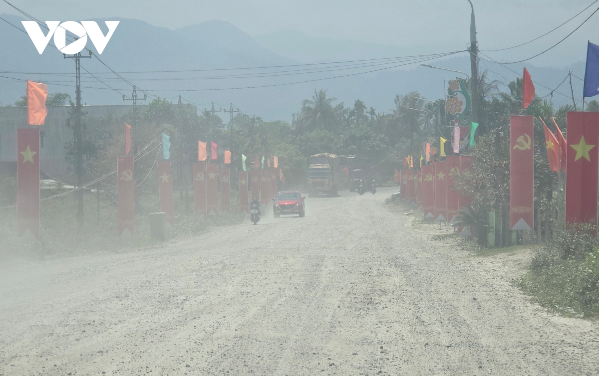 Nhà của bà Huỳnh Thị Mai, ở thôn Quý Thạnh 1, xã Thăng Bình, TP Đà Nẵng ở sát Quốc lộ 14E, nhiều năm qua phải sống trong bụi bặm và nỗi lo mất an toàn giao thông.