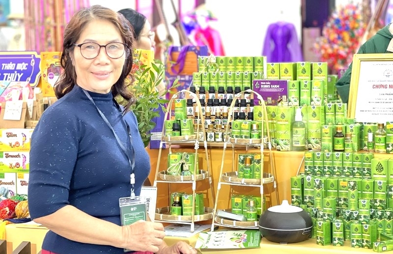 Sản phẩm dầu tràm Huế tham gia tại hội chợ Mùa Thu Hà Nội năm 2025 (Ảnh Nguyên Thảo)