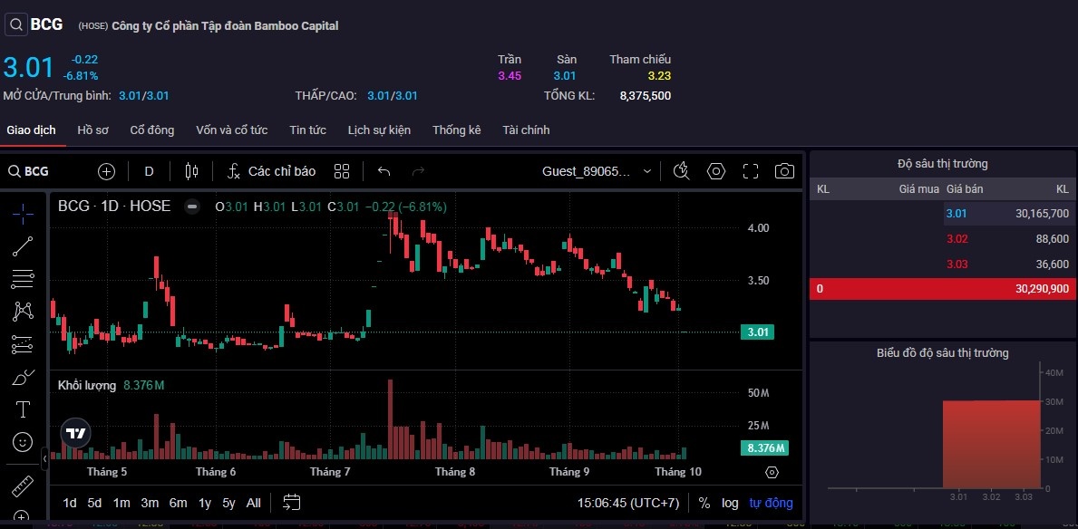 Cổ phiếu BCG dư bán sàn hơn 30,1 triệu đơn vị trong phiên 2/10.