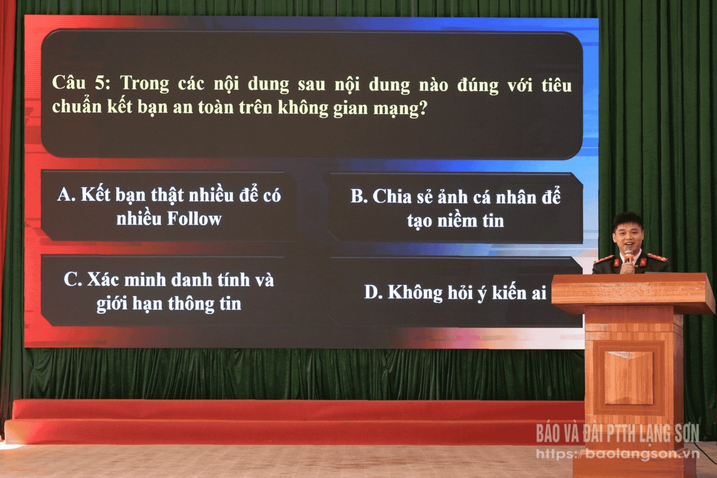 Cùng với đó, ĐVTN, HSSV của nhà trường đã được trang bị quy tắc “3 không - 3 phải”, kỹ năng nhận diện nguy cơ, dấu hiệu nạn nhân bị thao túng, cùng nguyên tắc an toàn khi kết bạn và sử dụng mạng xã hội; nhấn mạnh thông điệp: chia sẻ - kết nối - không im lặng, chủ động tìm đến gia đình, thầy cô và cơ quan chức năng khi gặp tình huống bất thường trên mạng.