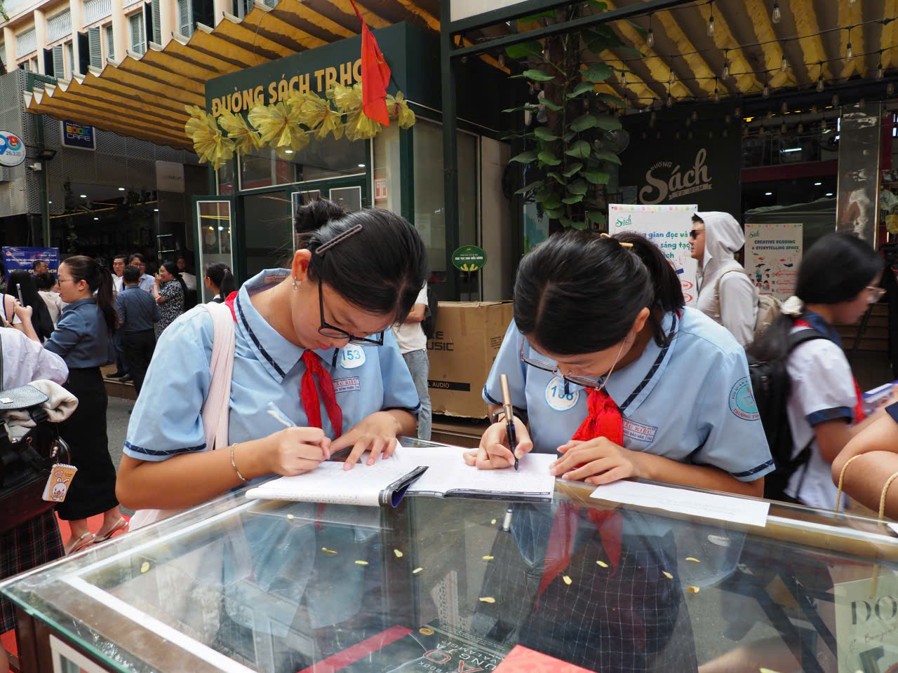 Ở trạm 8 với thử thách "Lật trang tìm chữ", nhiệm vụ yêu cầu học sinh ghi lại trích dẫn trong một trang sách có từ thể hiện tình cảm gia đình, Huỳnh Như, học sinh lớp 8/7, Trường THCS Hoàng Diệu (phường Tân Phú) chọn sách "Bám váy mẹ" của tác giả Tạ Quốc Kỳ Nam. Học sinh này cho biết nhiệm vụ tuy không quá khó nhưng gợi lên cho em nhiều suy nghĩ về tình cảm gia đình.