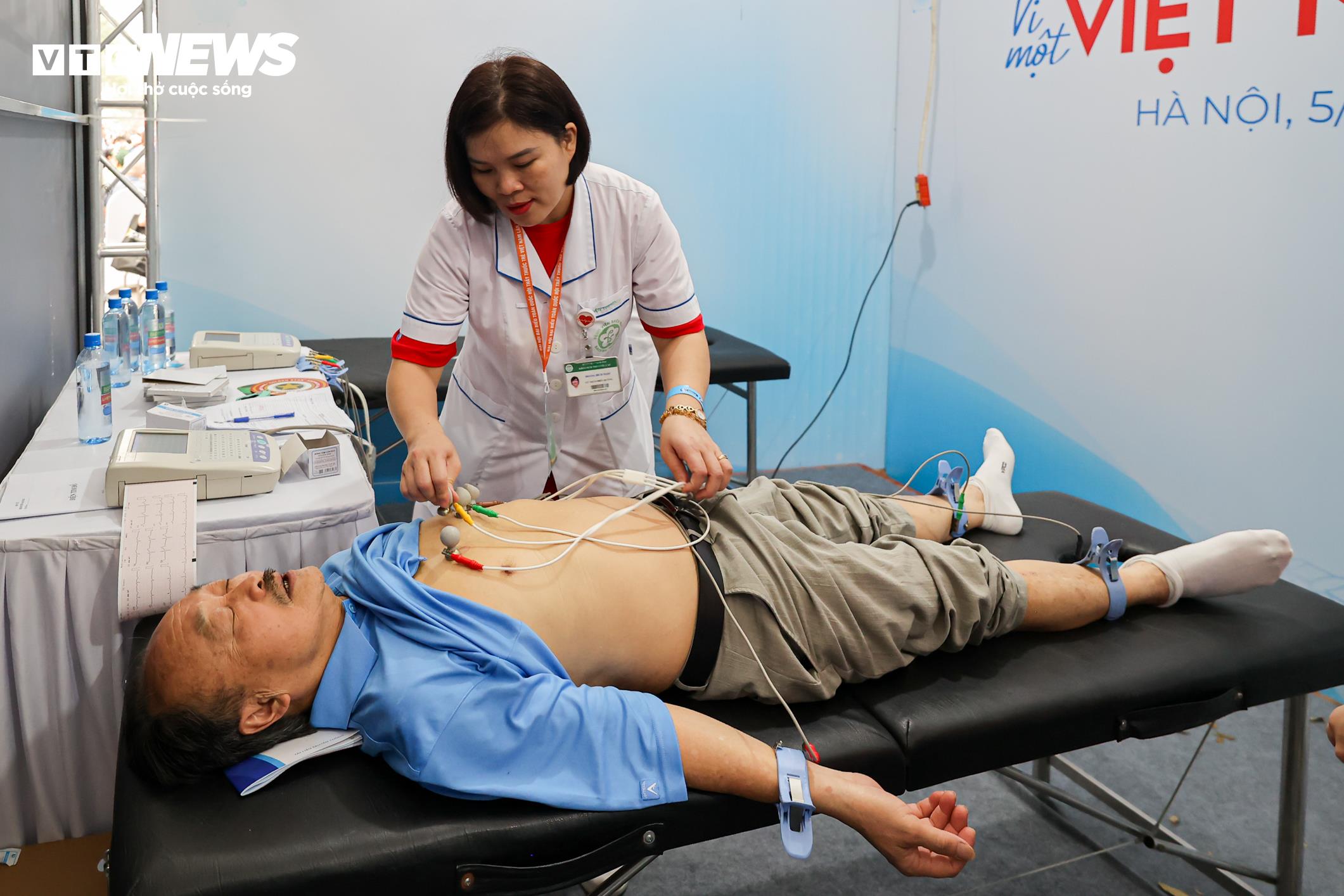 Các khu vực kiểm tra mật độ xương và đo điện tim thu hút đông đảo người dân đến thăm khám.