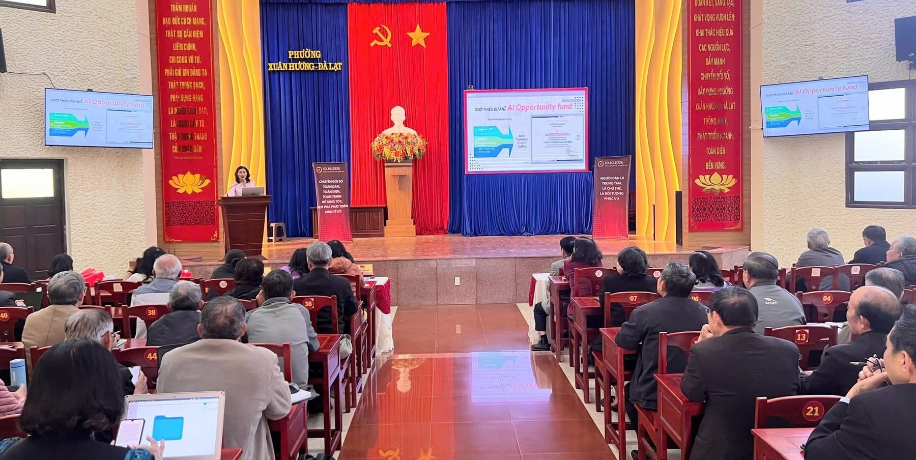 Phát biểu khai giảng, bà Phan Thị Xuân Thảo, Phó Chủ tịch UBND phường Xuân Hương - Đà Lạt nhấn mạnh, lớp học không chỉ nhằm trang bị kiến thức mà quan trọng hơn là vận dụng vào thực tiễn công việc. Việc ứng dụng trí tuệ nhân tạo sẽ giúp cán bộ, công chức, tổ trưởng dân phố làm việc hiệu quả, giảm sai sót và phục vụ người dân tốt hơn, hướng tới xây dựng phường hoạt động thông minh, chuyên nghiệp và gần dân.