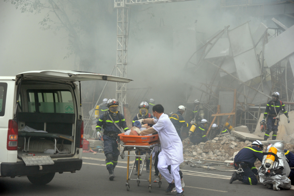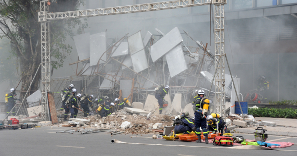 Tình huống giả định buổi diễn tập: Xảy ra nổ, cháy tại nhà hàng ở tầng 1 tòa nhà Technopark Tower do khí gas bị rò rỉ, tích tụ, kết hợp với không khí tạo thành hỗn hợp nổ, khi gặp nguồn nhiệt đã gây nổ làm sập đổ một phần cấu kiện xây dựng.