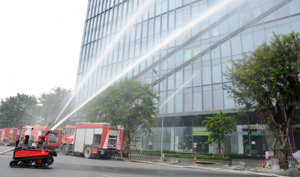 Phát biểu khai mạc buổi diễn tập, đồng chí Dương Đức Tuấn cho biết: Trong những năm gần đây, tốc độ đô thị hóa tại Thủ đô diễn ra mạnh mẽ với sự phát triển, gia tăng nhanh chóng của các công trình nhà cao tầng, siêu cao tầng. Toàn thành phố hiện có trên 1.500 công trình nhà cao tầng với các loại hình như nhà chung cư, nhà hỗn hợp, trụ sở cơ quan, văn phòng, khách sạn, bệnh viện, trường học... trong đó có hơn 100 công trình cao từ 25 tầng trở lên, tạo nên thách thức rất lớn đối với công tác đảm bảo an toàn PCCC và CNCH trên địa bàn.